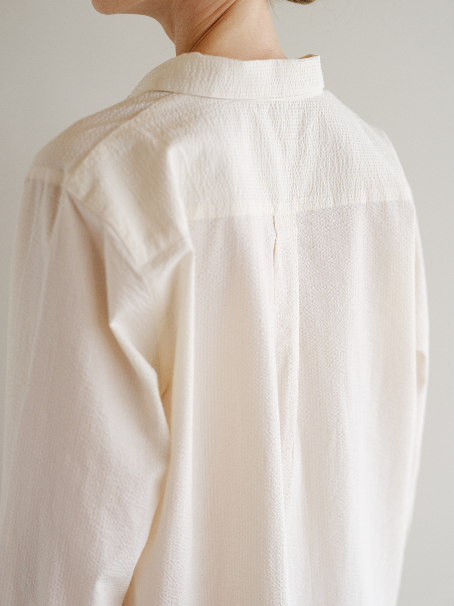 Ara storskjorte i ubleket krepp er laget av ekstra fin ubleket bomull som føles luftig mot huden. I vevd bomullskrepp skapes de unike luftlommene i vevingen. De ekstra tynne bomullstrådene gir en delikat kreppveving, perfekt for deg som elsker den myke og crispy følelsen.
