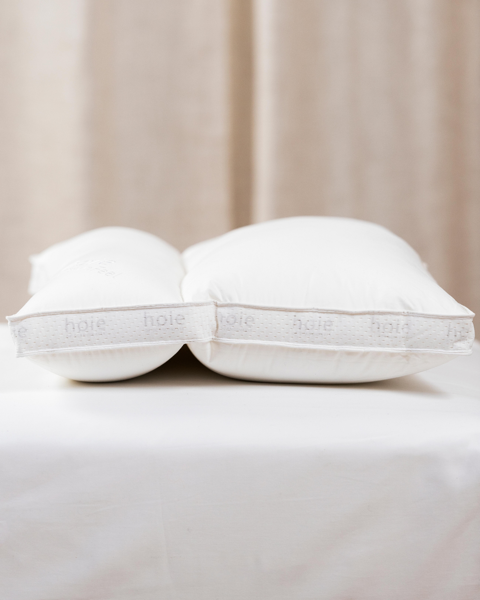 Høie DownFeel Anatomy er en ergonomisk tilpasset pute med to kamre som gir optimal støtte til nakke- og hodepartiet. Nakken hviler på det lille, men faste kammeret og hodet støttes av det større og mykere kammeret.
