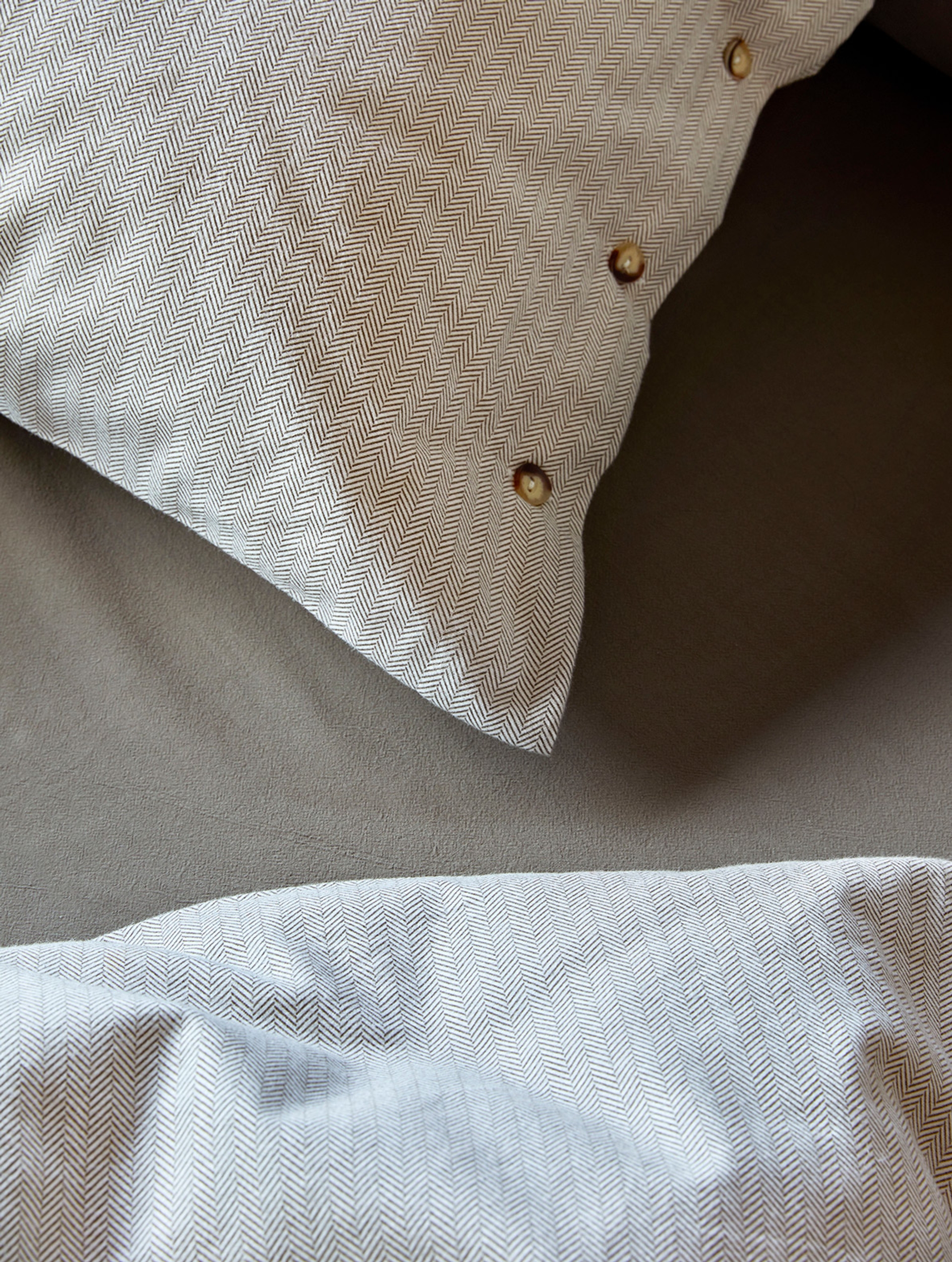 Flanell kan lages av både ull, bomull og kunstfiber. Flanellsengetøyet fra Høie er laget av 100% ekstra fin bomull, for en varm, lun og behagelig natts søvn. I likhet med andre Høie-tekstiler er flanellsengesettene våre utviklet med omtanke for både miljøet og deg.