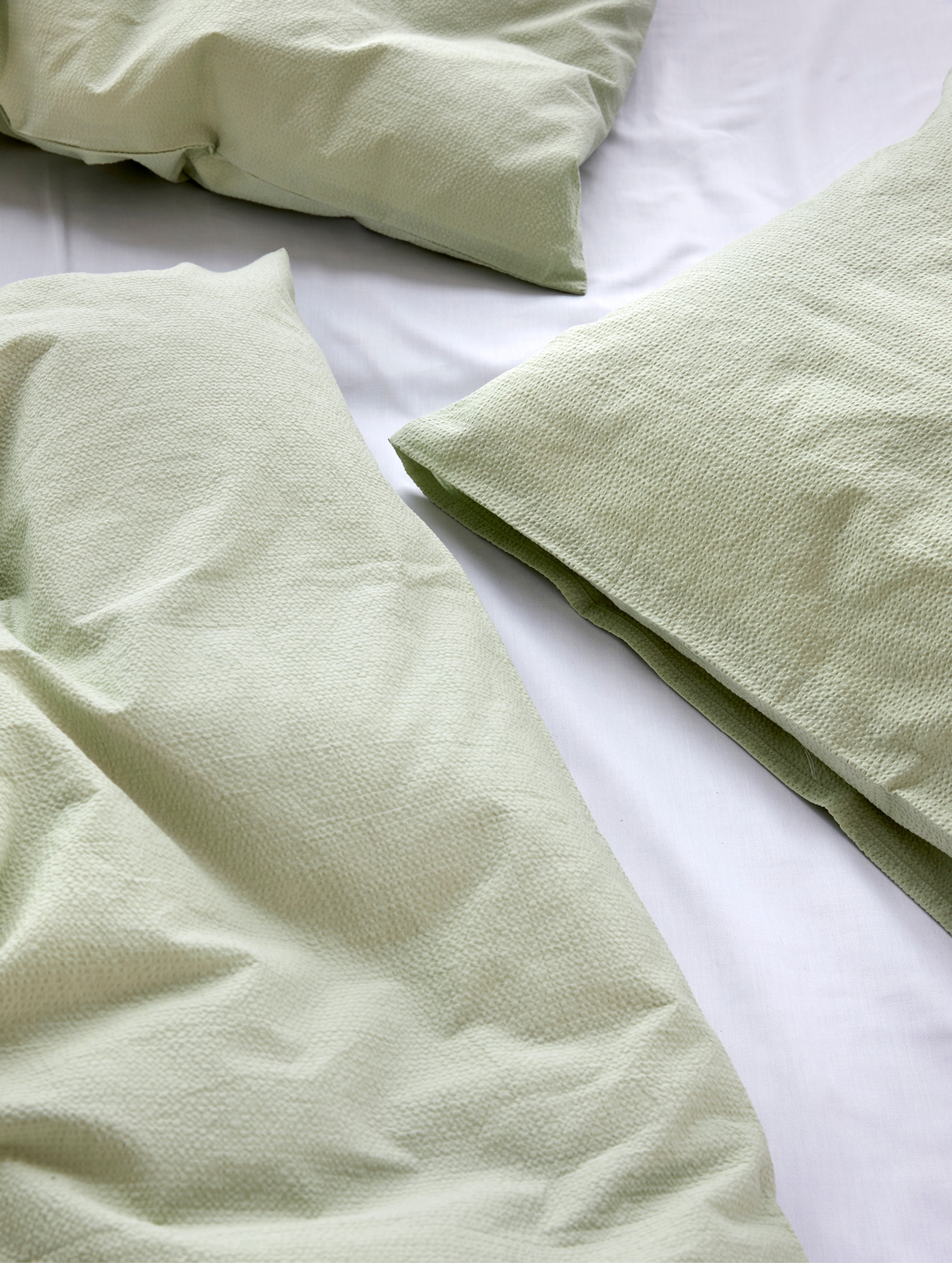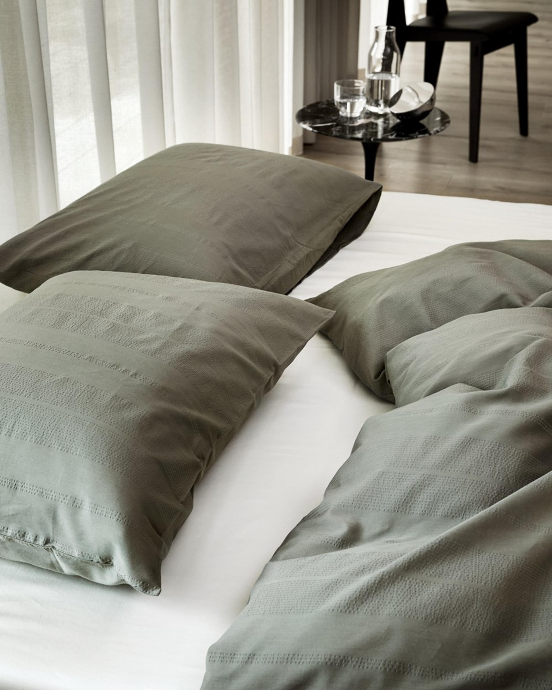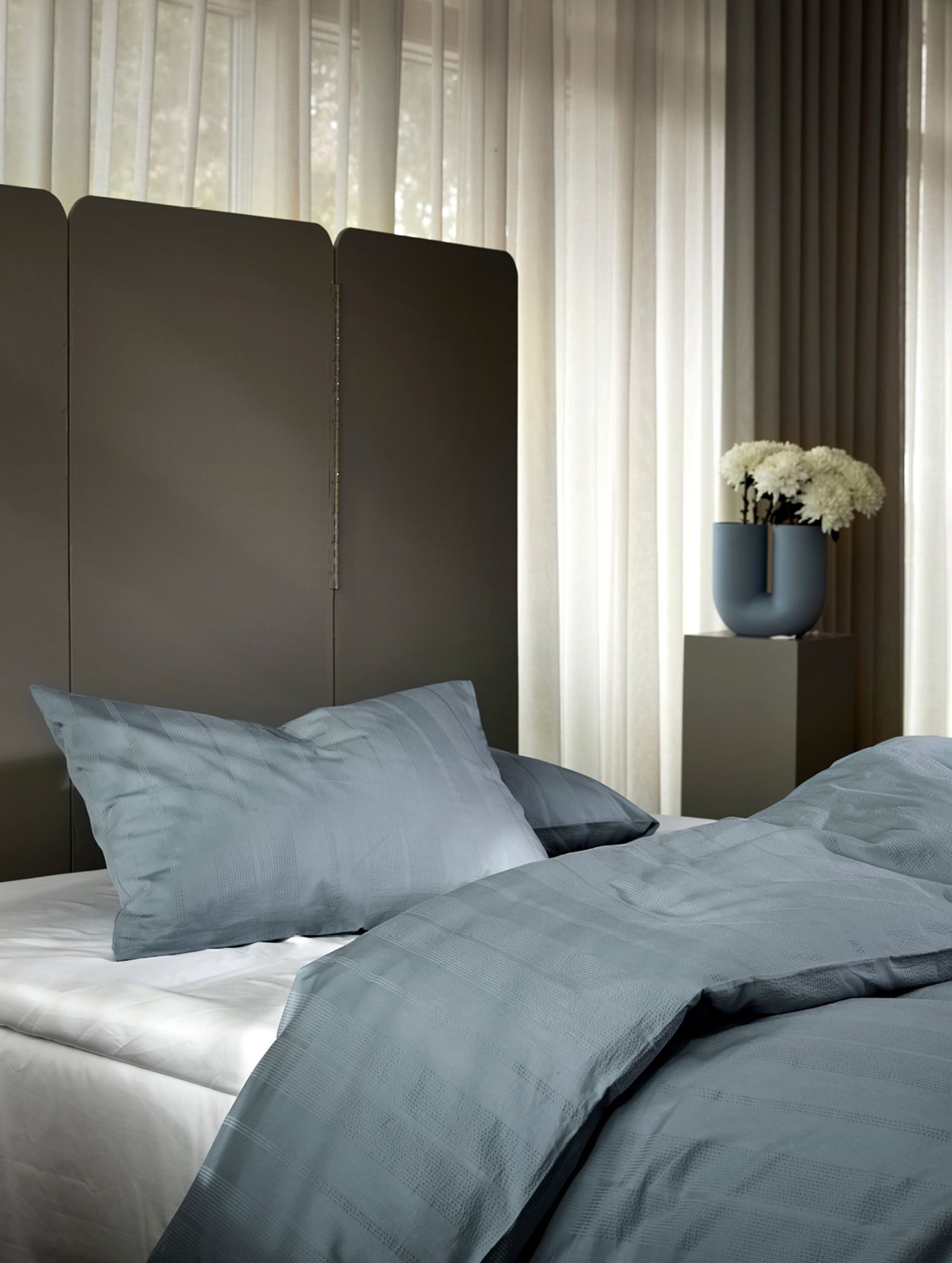 Man får en helt egen følelse av sengesettet på hotell. Lyden, følelsen mot kroppen og kvaliteten som tar vare på deg helt til du våkner uthvilt. Dynen lager en knitrende lyd, og det stødige sengesettet ligger rundt deg som en skjorte av høy kvalitet. Om du elsker denne følelsen, da er du trolig fan av percale. Hva kan så gjøre det bedre? Krepp. Høie Chris er en vevd krepp i percale, luftig, stødig og Svanemerket for deg som ønsker å gjøre litt flere miljøvennlige valg.