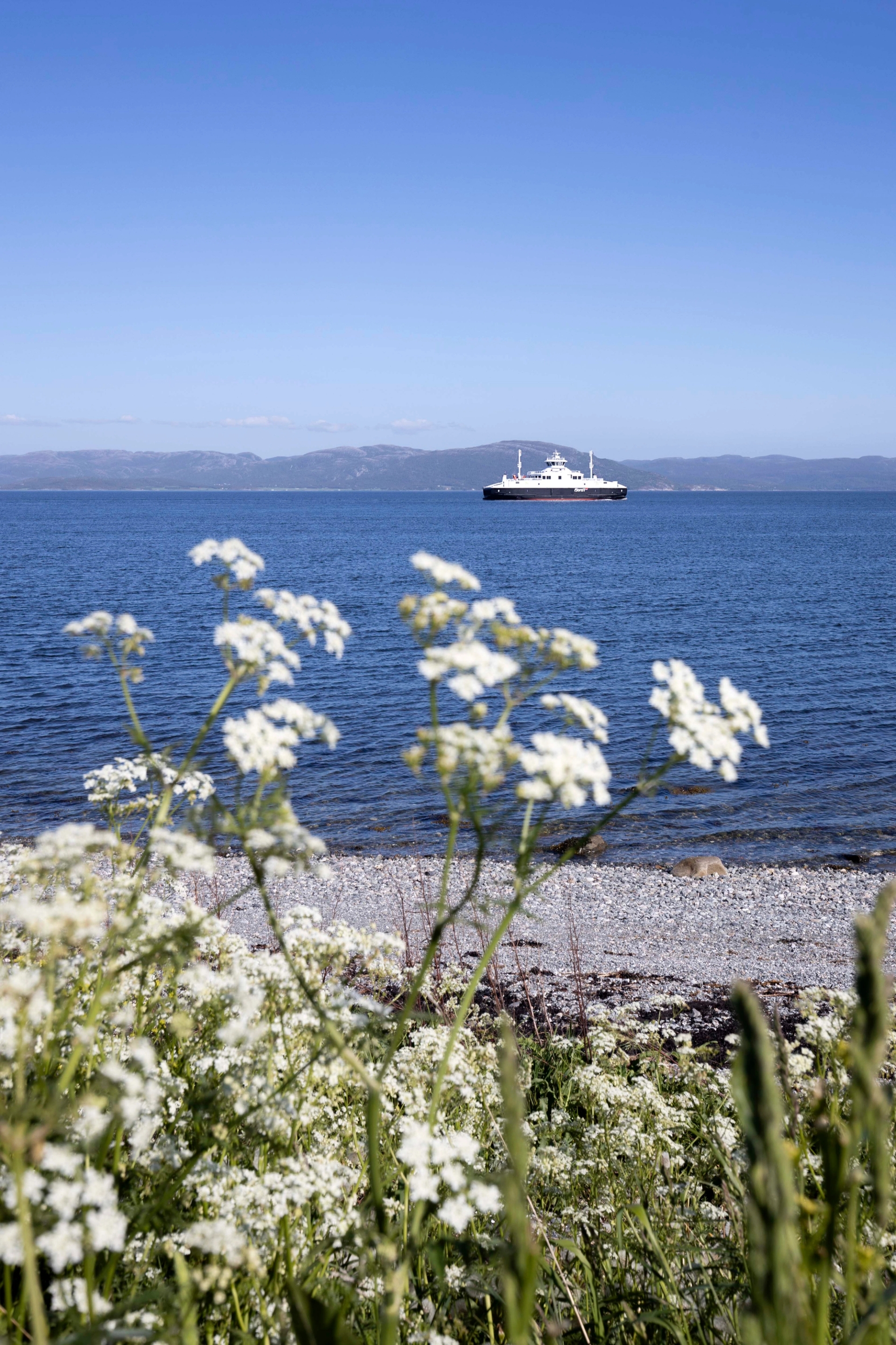Det er når det er helt stille i huset. Alle de andre sover. Da kan jeg sette meg i solveggen med kaffekoppen, og nyte utsikten over Brekstadbukta og følge med på ferge- og båttrafikken.