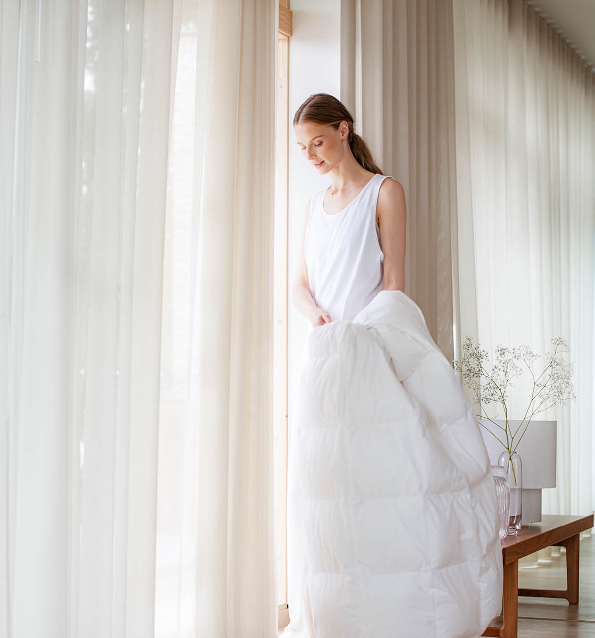 Svarer du derimot nei, kan helårsdyne være et godt kjøp. En dyne som ikke er for varm på sommeren, og ikke for kald på vinteren. Vi anbefaler helårsdyner i dun. Dun er varmere enn fiber, noe som gjør at den veier mindre - samtidig som den oppnår samme varmegrad. På sommeren får man deilig letthet, samtidig som dun leder svette og fuktighet effektivt bort. På vinteren kan man pakke seg inn i dyna og få den deilige varmen som dun gir.