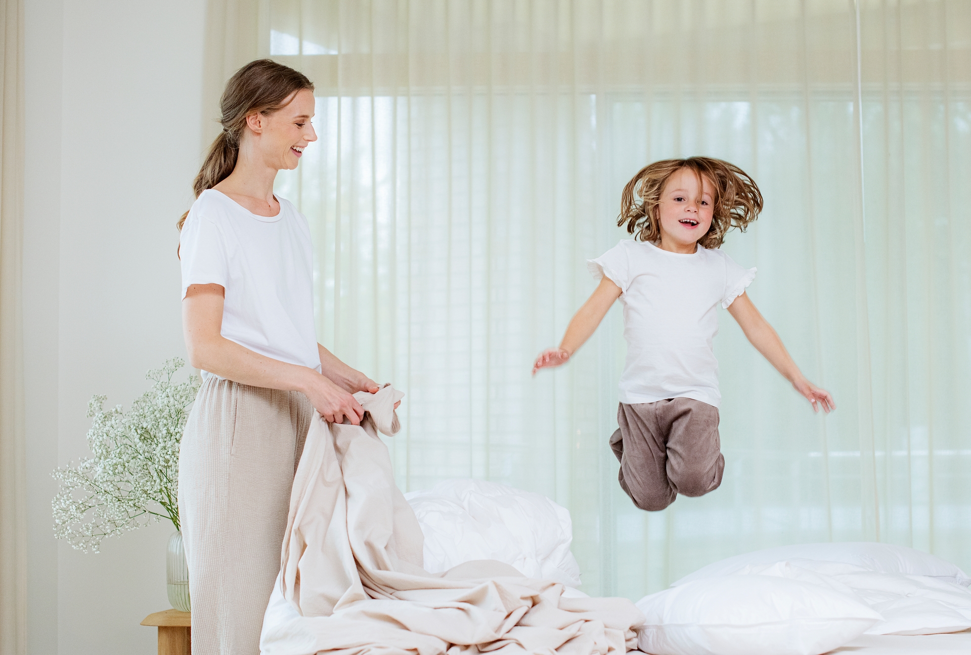 Har man valgt seg en helårsdyne kan man fortsatt gjøre mange tiltak for å justere varmefølelsen opp og ned. Sengetøyet og lakenet kan påvirke følelsen med noen enkle grep. En helårsdyne med flanellsengesett vil være varmere enn en helårsdyne med sengetøy i krepp. I de kaldere månedene anbefaler vi flanell for å skape en varmere opplevelse. Velger man et laken i flanell, sammen med et flanellsengesett - har man lagt alt til rette for det ideelle vintersoverommet. For de varme sommerdagene er det krepp som Ara og Pure som vil gi deg en deilige, luftige følelsen. En kjøligere touch får man med sateng som Milano. Perfekt for sommerkvelder som bare varer og varer.
