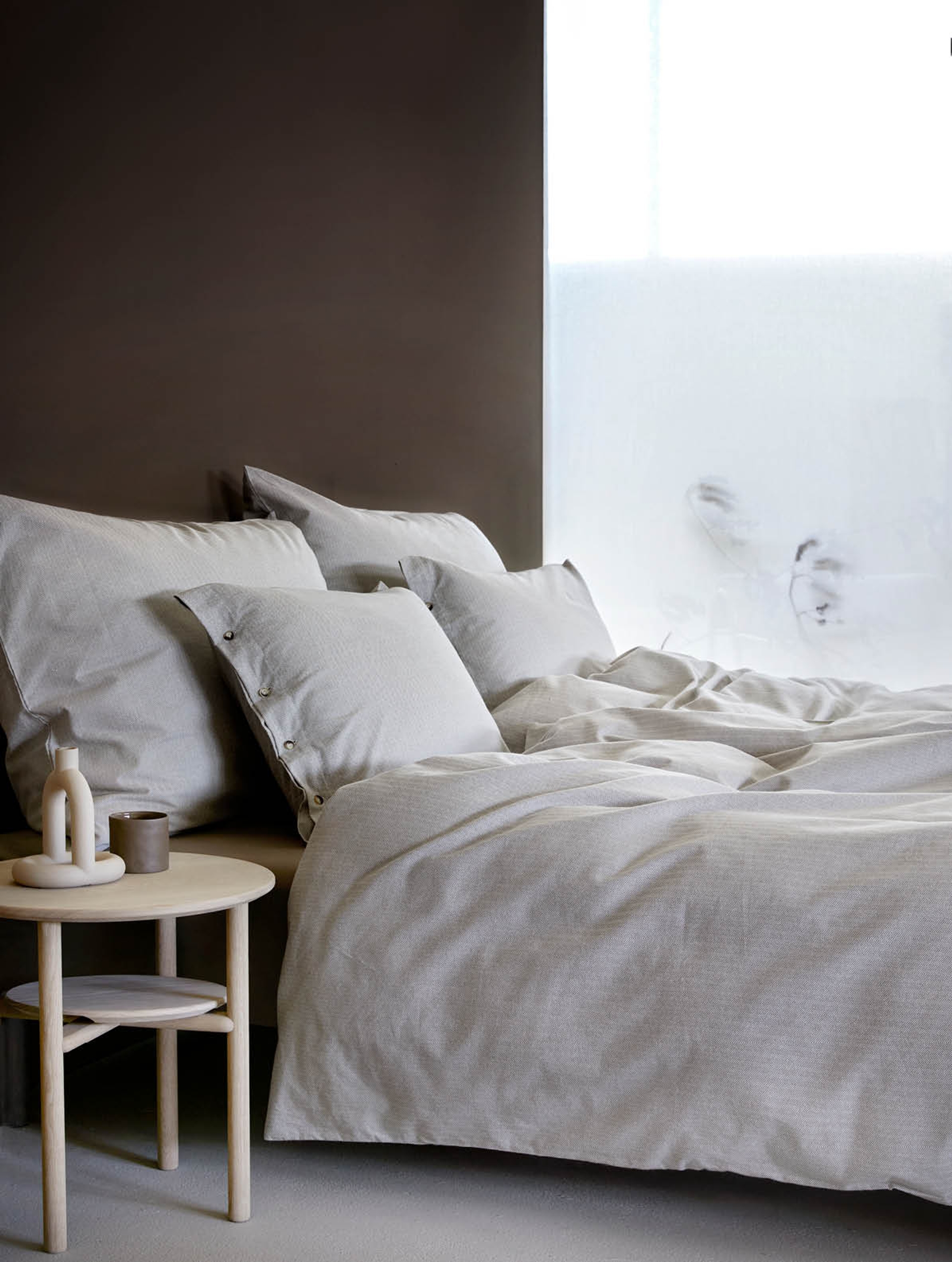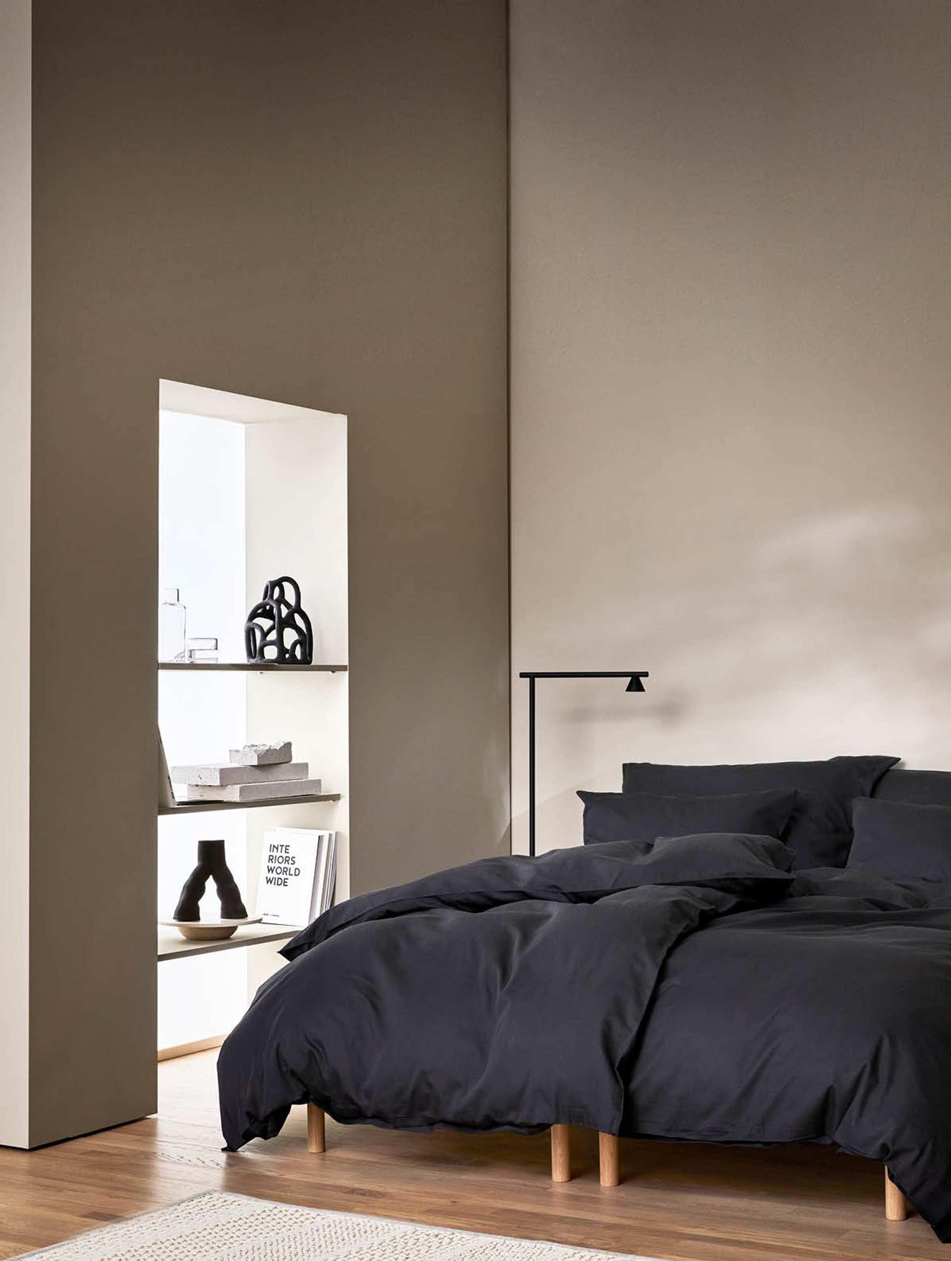 Dempede og varme gråtoner som skaper et lunt, elegant og sofistikert uttrykk. Dempet sort er vakker i møte med varme, nøytrale beigetoner.