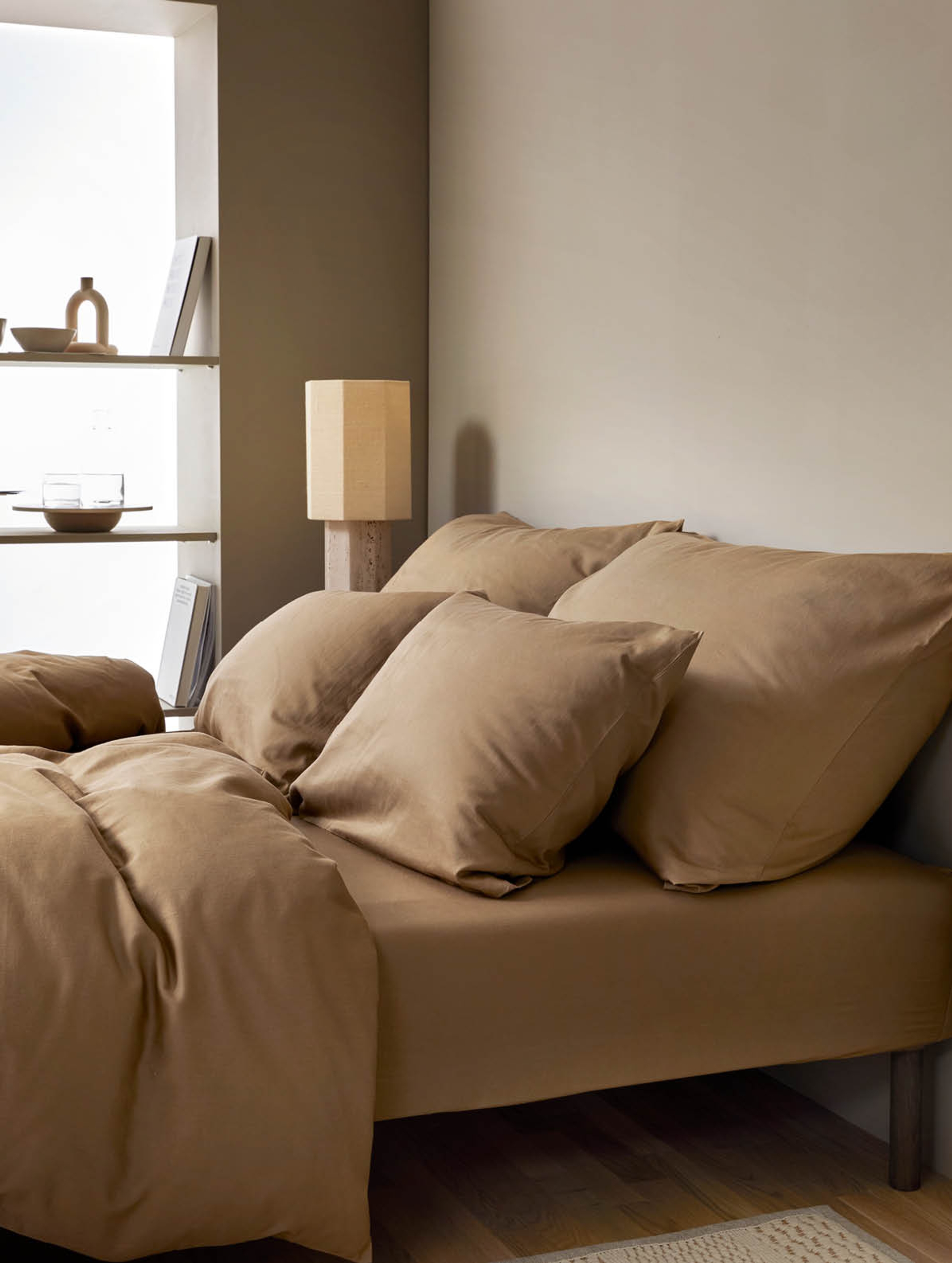 Mykt sengetøy i fargen kanel