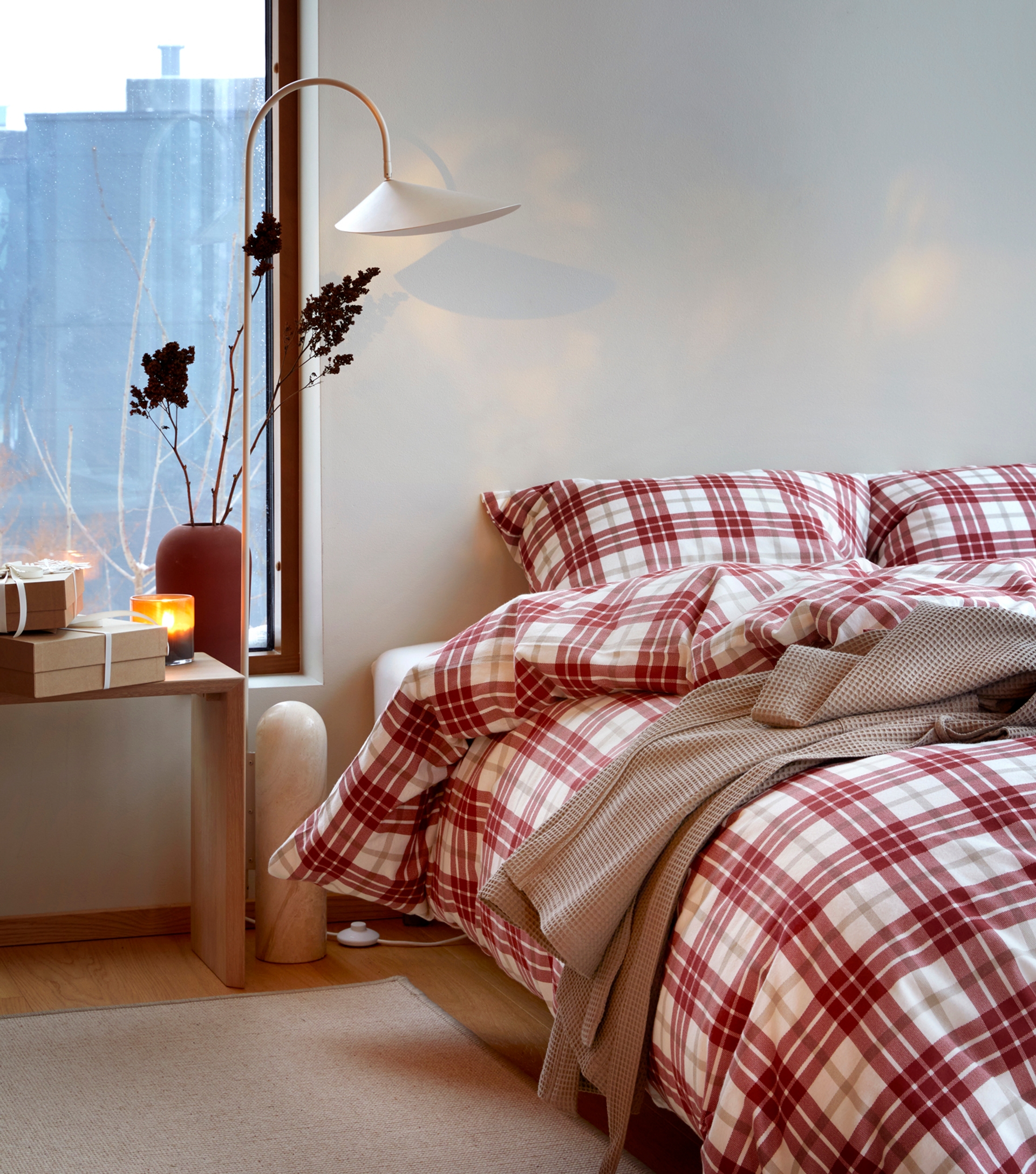 Skap julestemning helt inn på soverommet – med myke sengesett i sesongens farger og mønstre blir sengen et lunt og stemningsfullt fristed i førjulstiden.