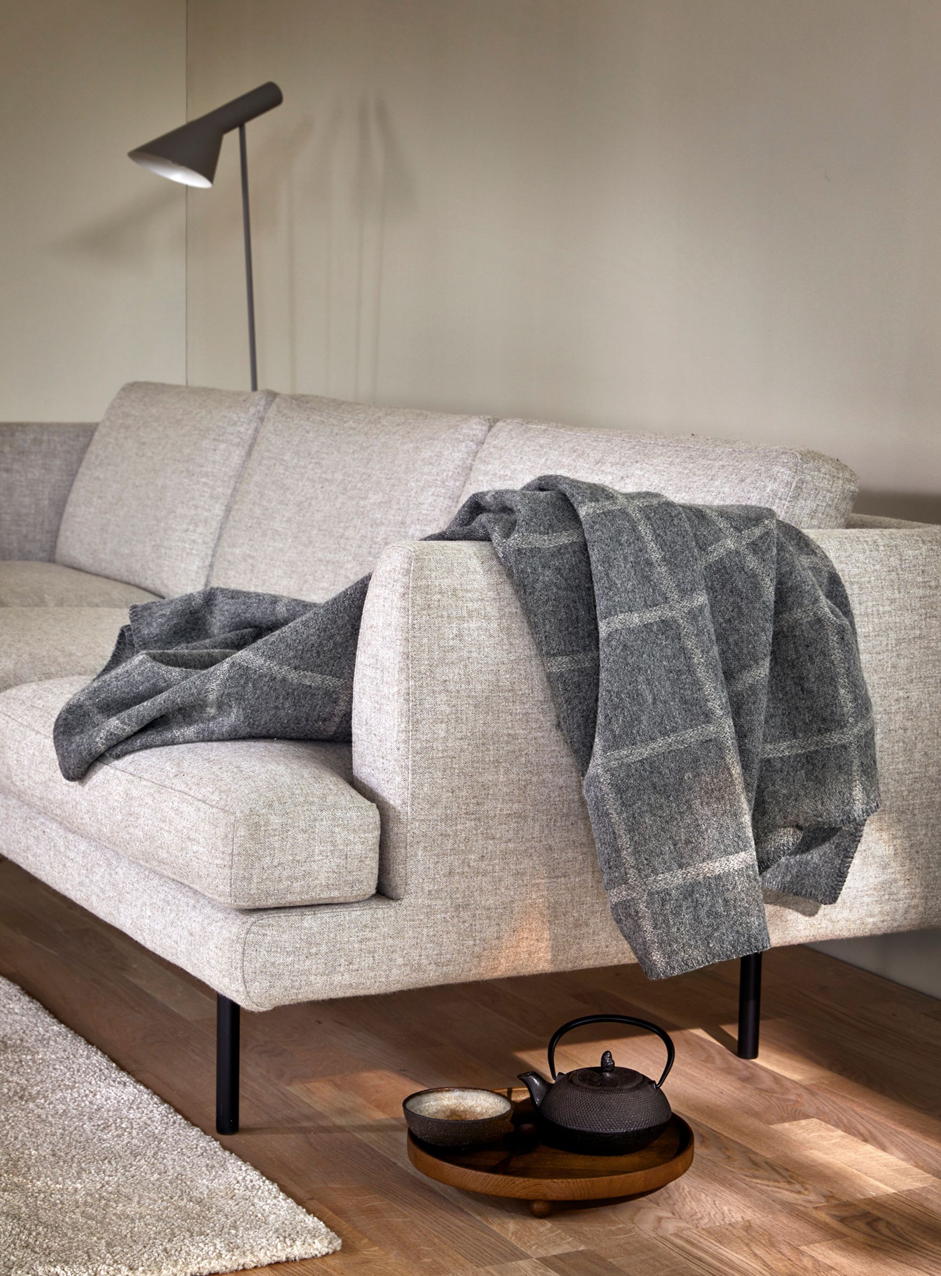Bestselgeren Oppdal er laget av norsk ull og kommer i fargenyansene lys og mørk grå. Dette ullpleddet kommer i vår største størrelse, 130x200 cm med en følelse av myk luksus.