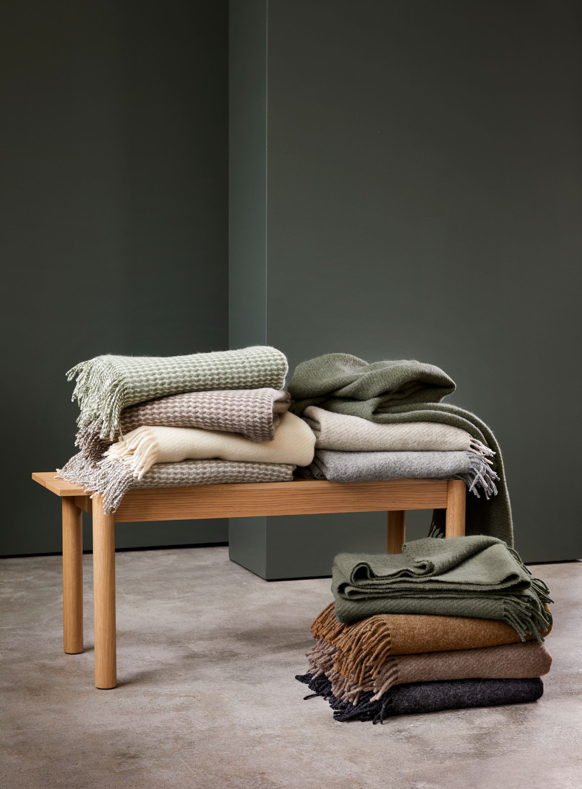 Myke og varme pledd i moderne farger. Falketind og Teide er tidløse modeller som passer i alle hjem. Ull er et pustende naturmateriale som varmer uten å skape fuktighet.