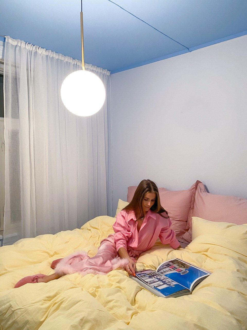 Vi har tatt en prat med moteikon Nina Sandbech, bli med inn på soverommet hennes hvor hun sover i en pastellsky. La deg inspirere av vårens vakreste farger.