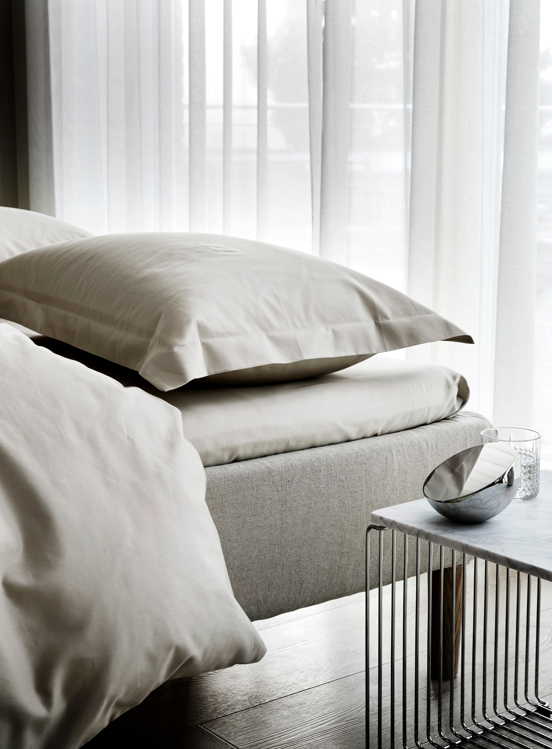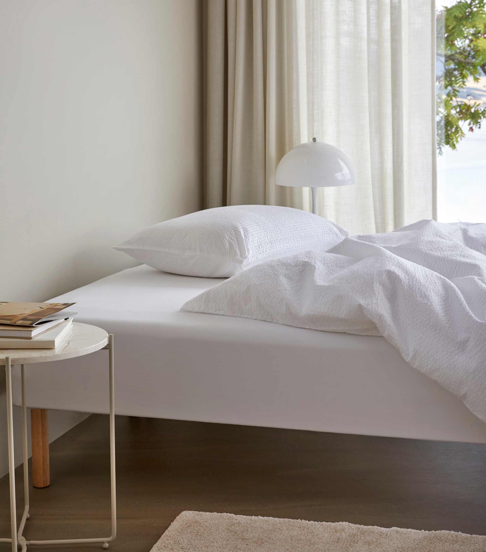 – Trekk lakenet rundt selve overmadrassen fremfor å la det henge over rammemadrassen. Et laken som ligger stramt på madrassen løfter hele soverommet, avslutter designsjefen.
