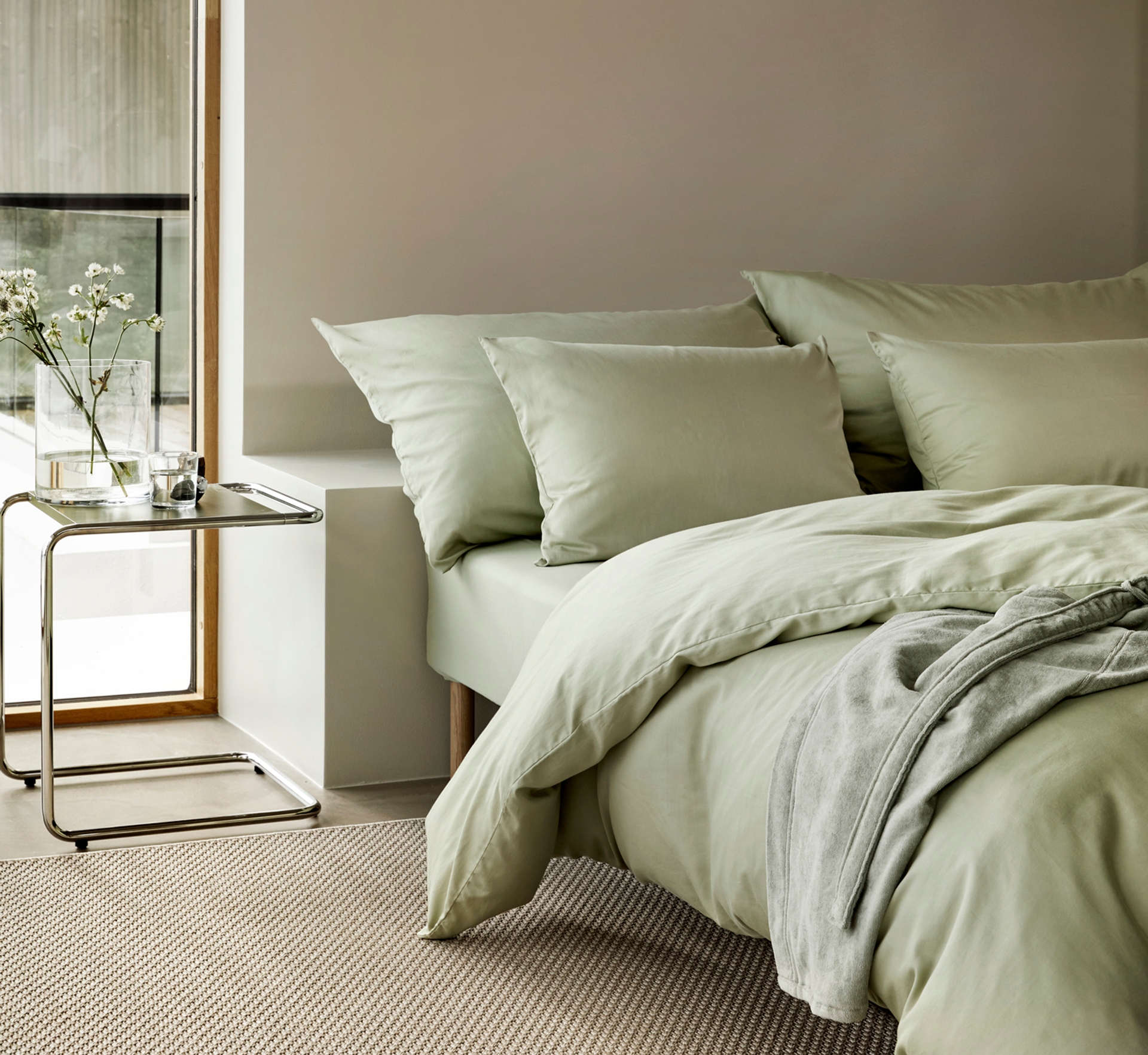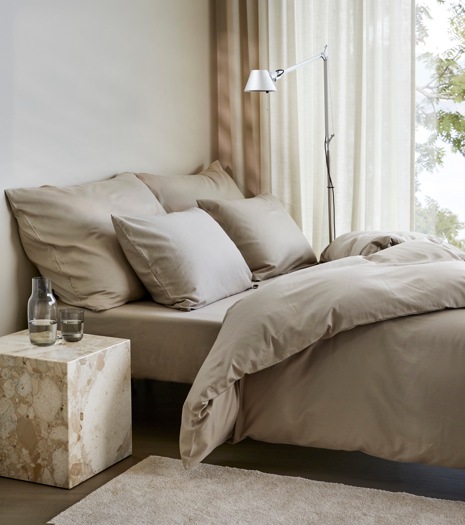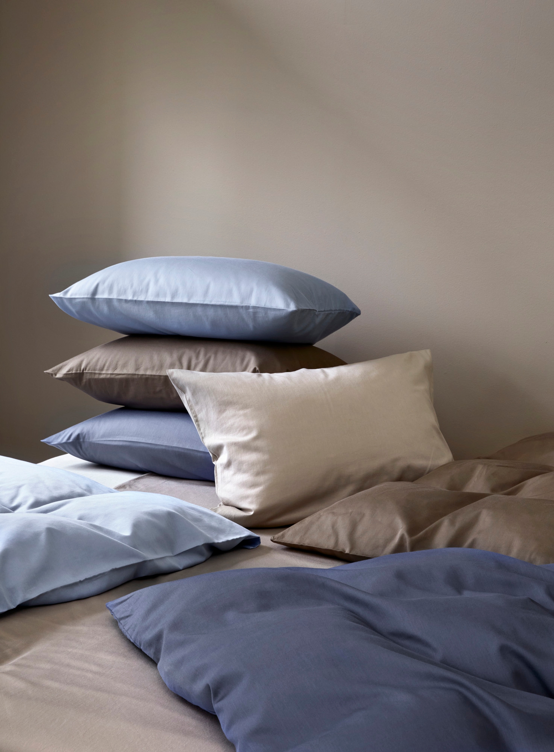 Den myke Harmoniserien kommer i hele ni delikate farger, slik at du kan finne den perfekte nyansen til ditt soverom. Designene er også laget for å kunne fungere i kombinasjon. Miks og match for å skape din personlige touch – velg laken eller hotellputetrekk i annen farge enn sengetøyet.