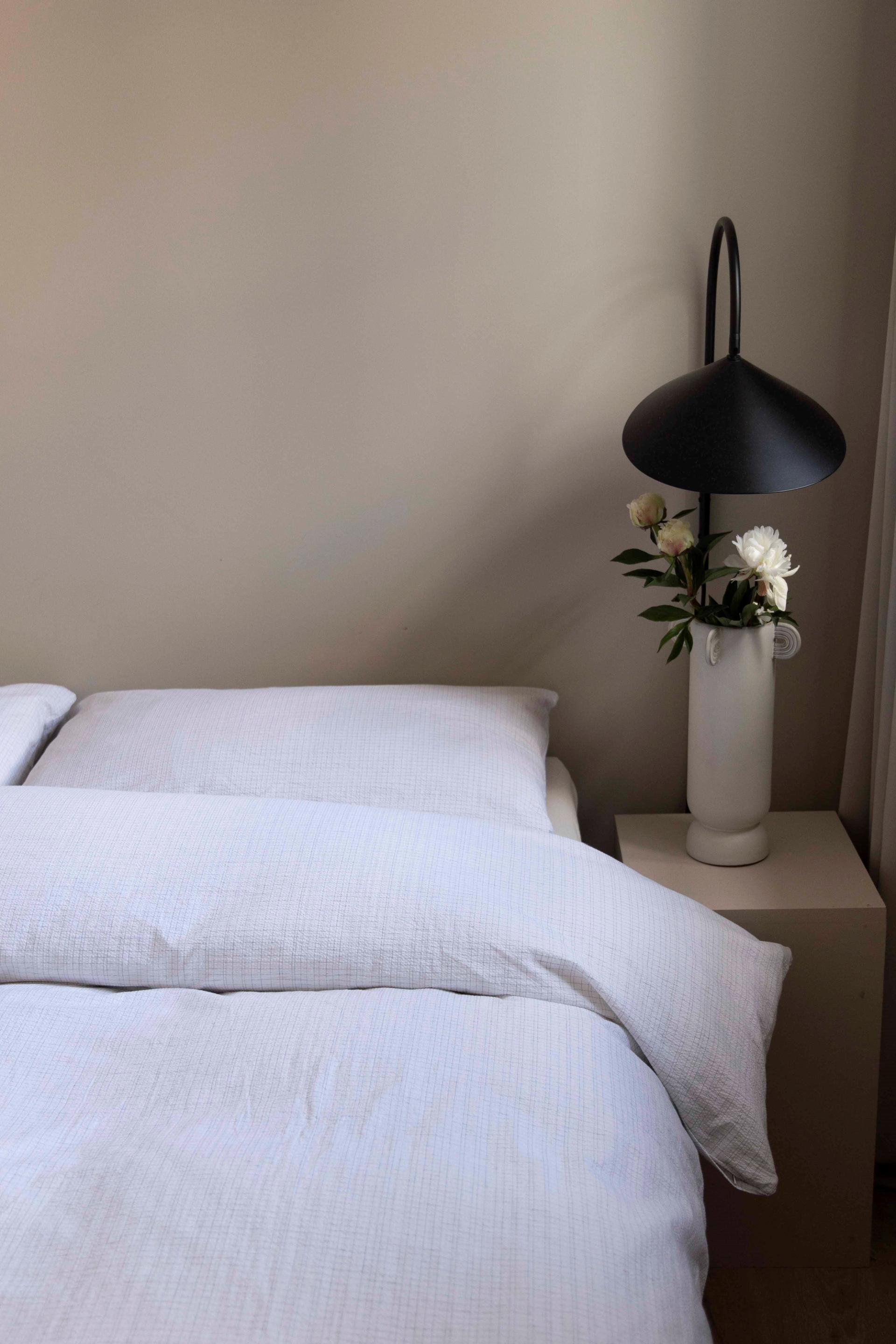 Elsker beige nyanser både på vegger og sengetøy. Det beige sengetøyet fra Høie i sateng er helt perfekt! Om høsten bruker jeg å innlemme mørkere jordtoner. Og om våren lysere. Det kan være fargen på sengetøyet eller pyntegjenstander. Om sommeren foretrekker jeg å bruke enten sateng eller lin. Sateng føler jeg gir en avkjølende effekt når den treffer huden, noe som er så deilig! Lin er også deilig fordi det er luftig. Helt nydelig om sommeren.