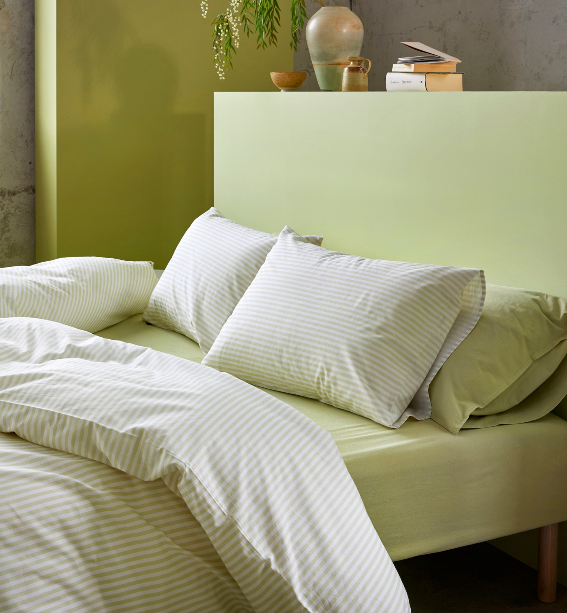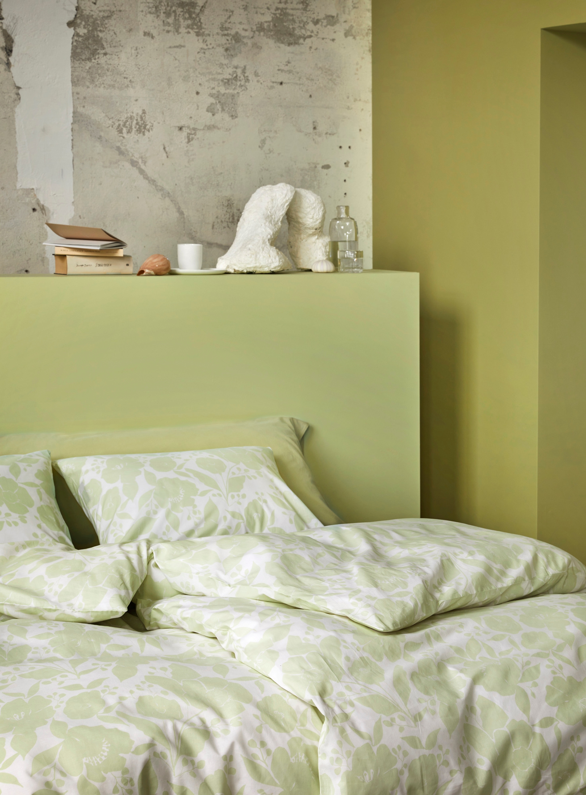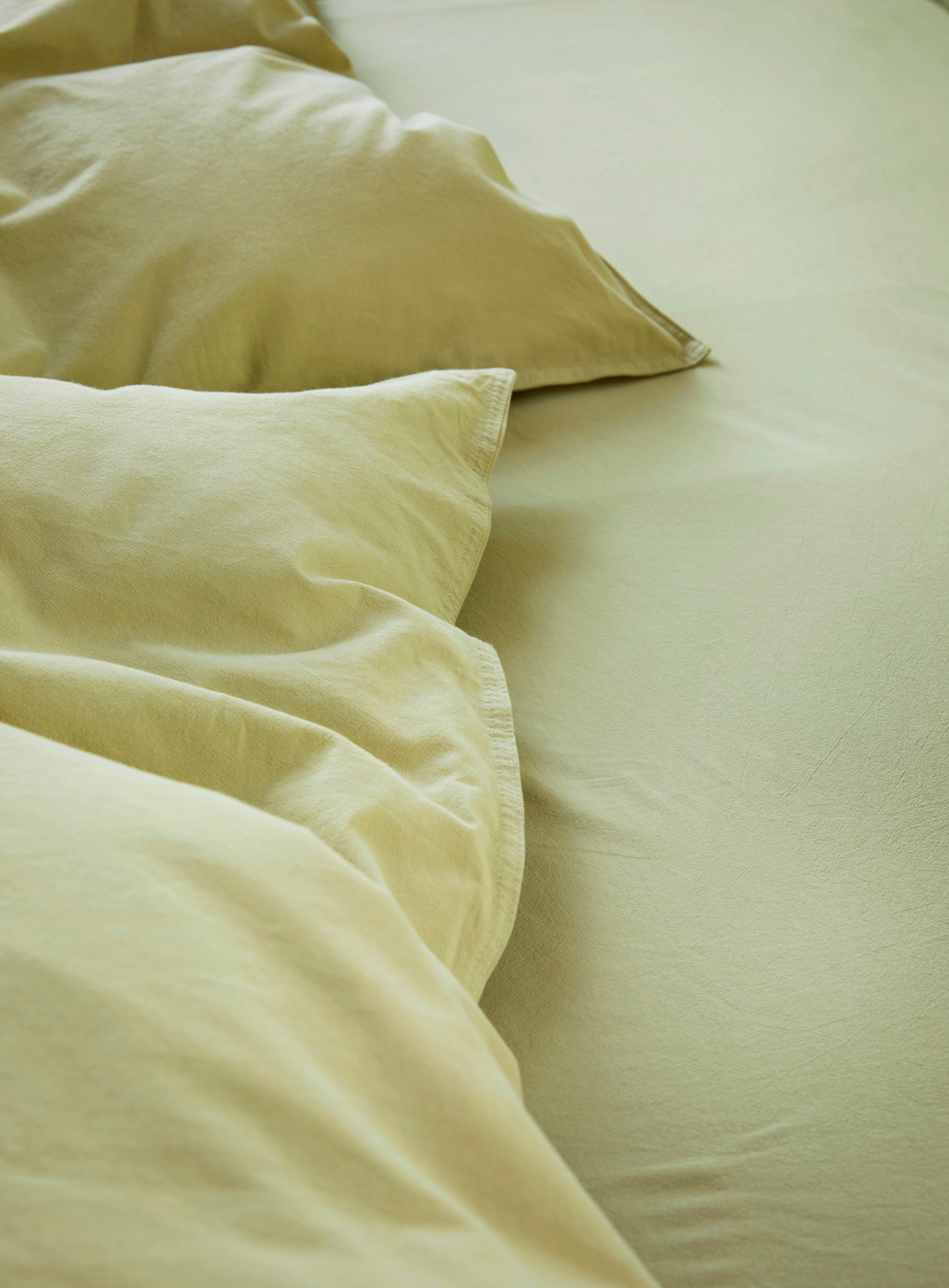 Sengesettene Ragna og Tor i fargen dempet lime passer perfekt å matche med Frøya i samme farge. Gå for laken og hotellputetrekk i den spreke fargen for et gjennomført og innbydende soverom.