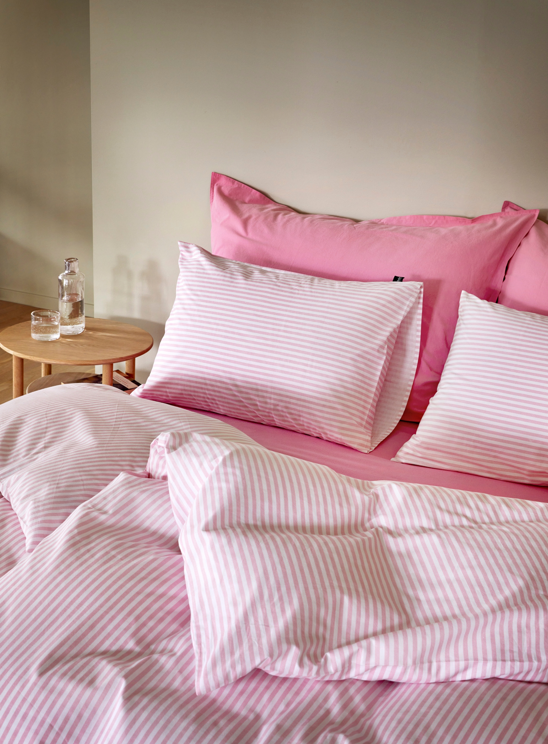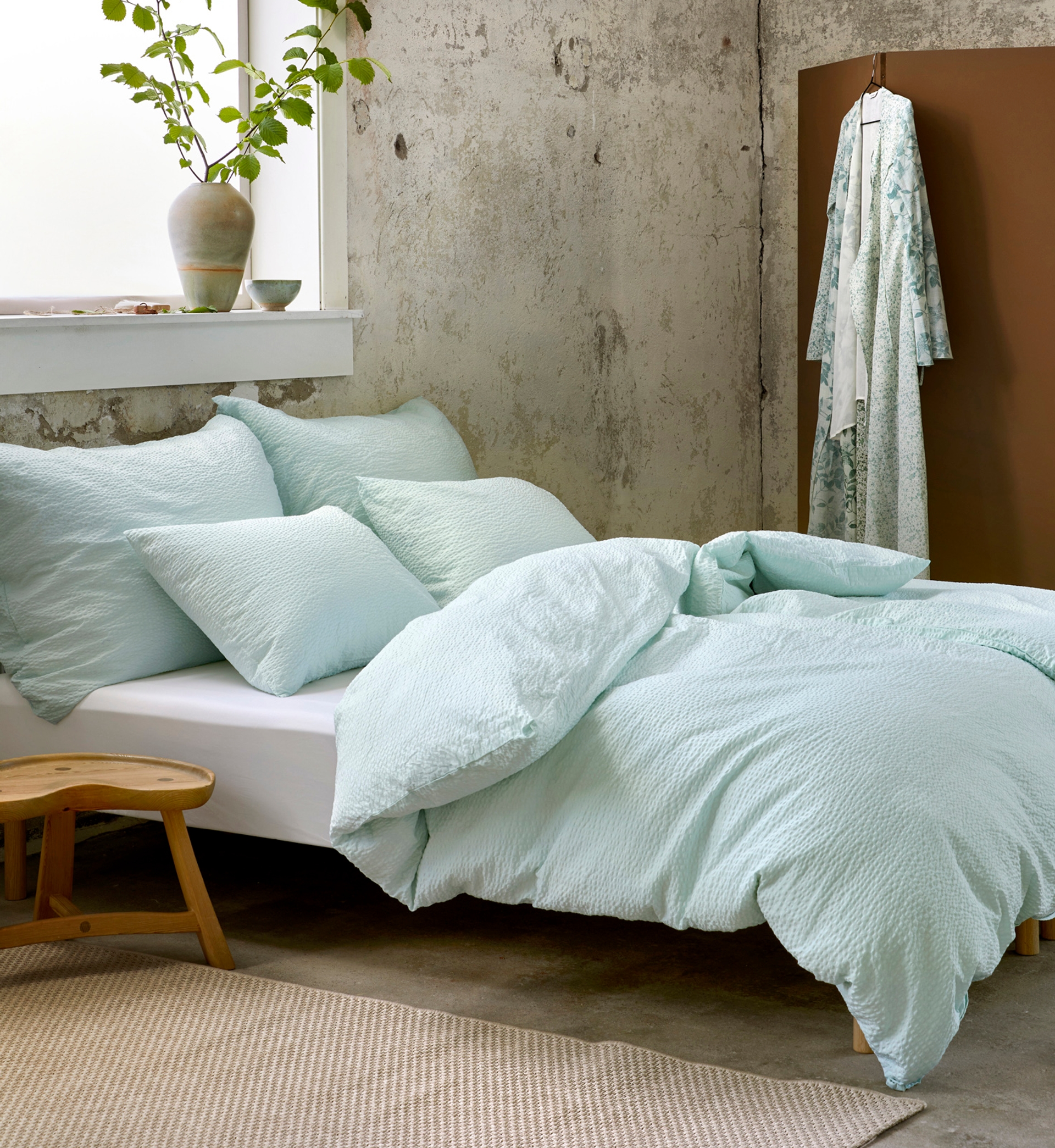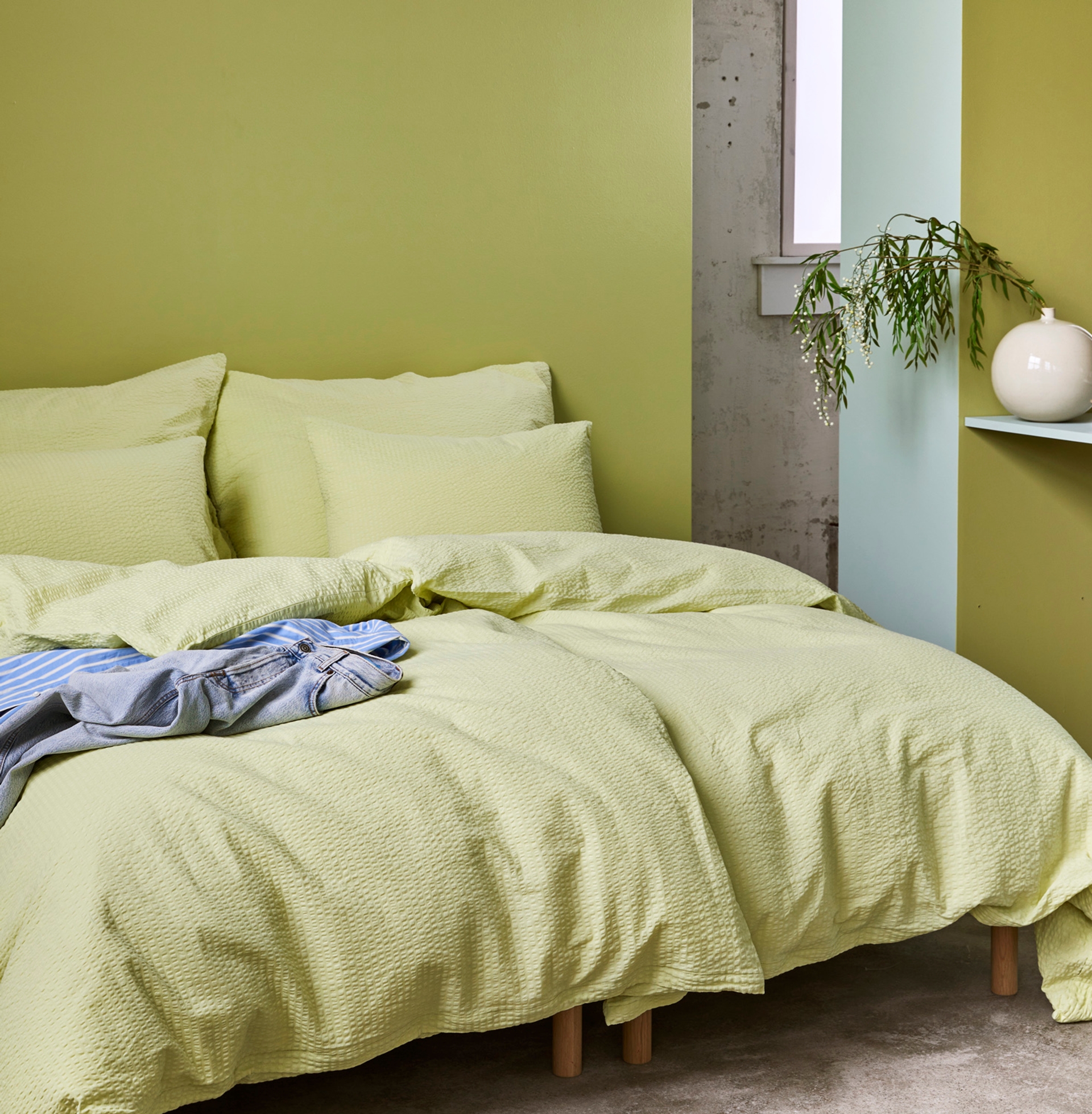 Sengesettene Ragna og Tor i fargen dempet lime passer perfekt å matche med Frøya i samme farge. Gå for laken og hotellputetrekk i den spreke fargen for et gjennomført og innbydende soverom.