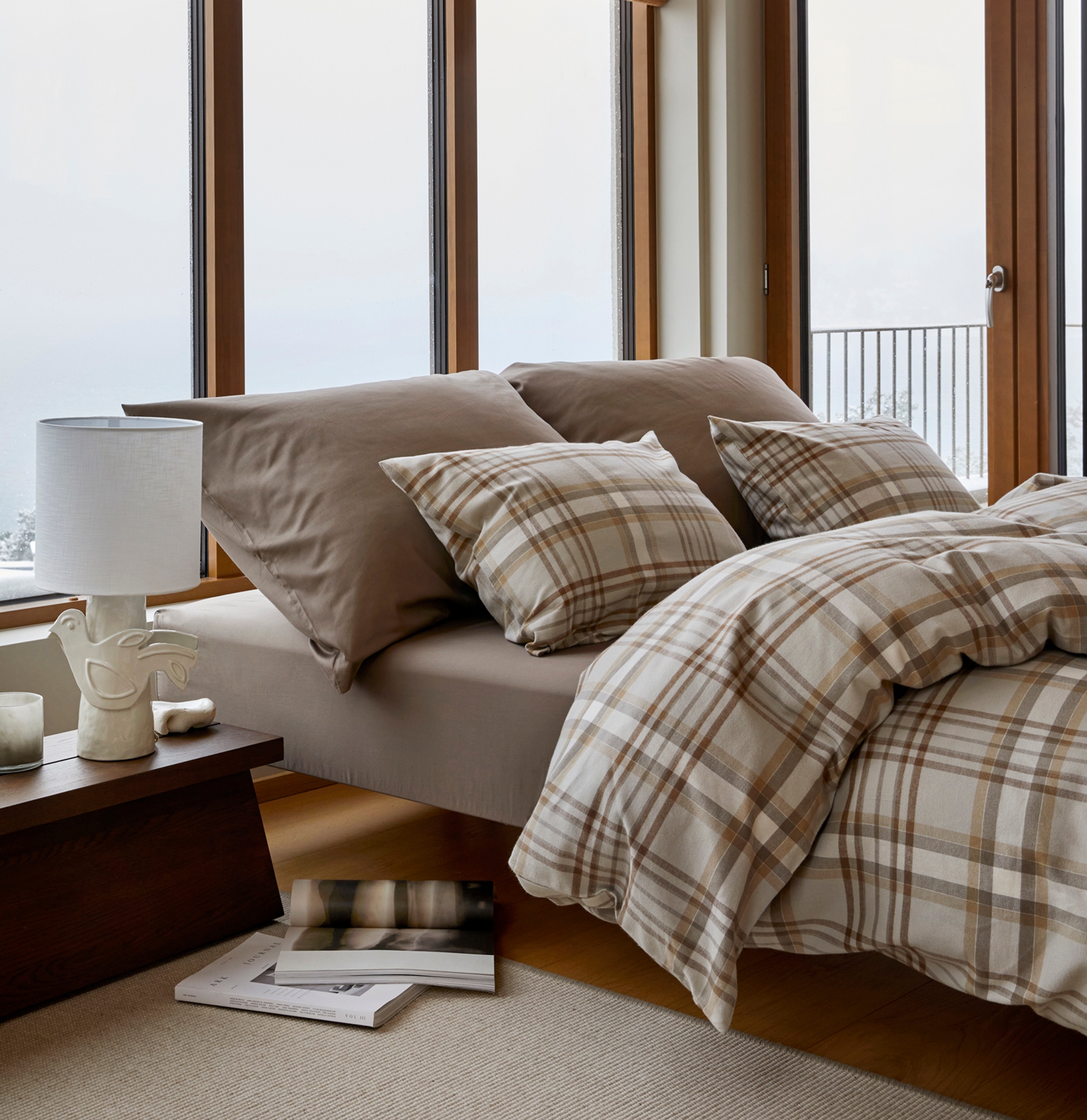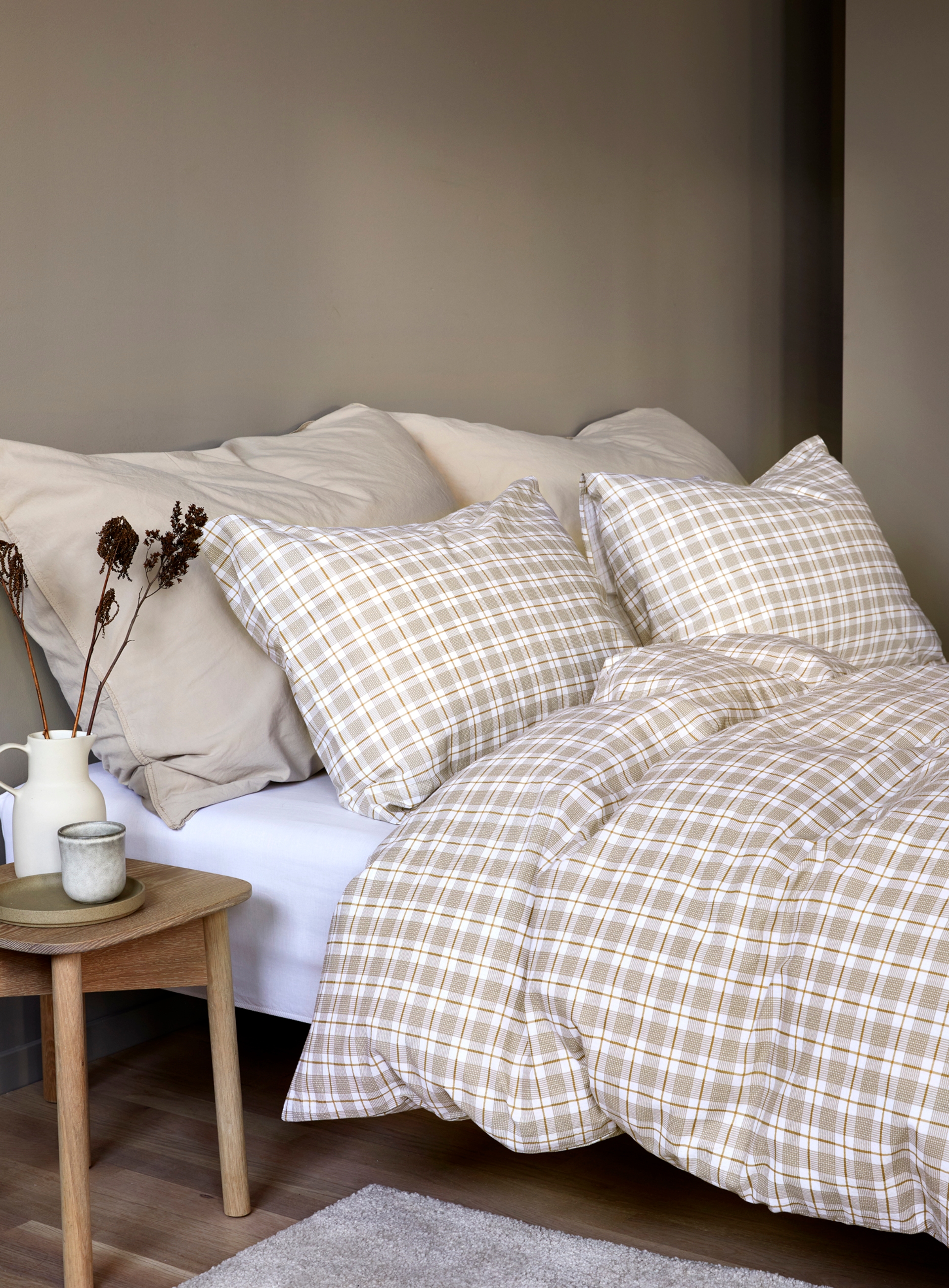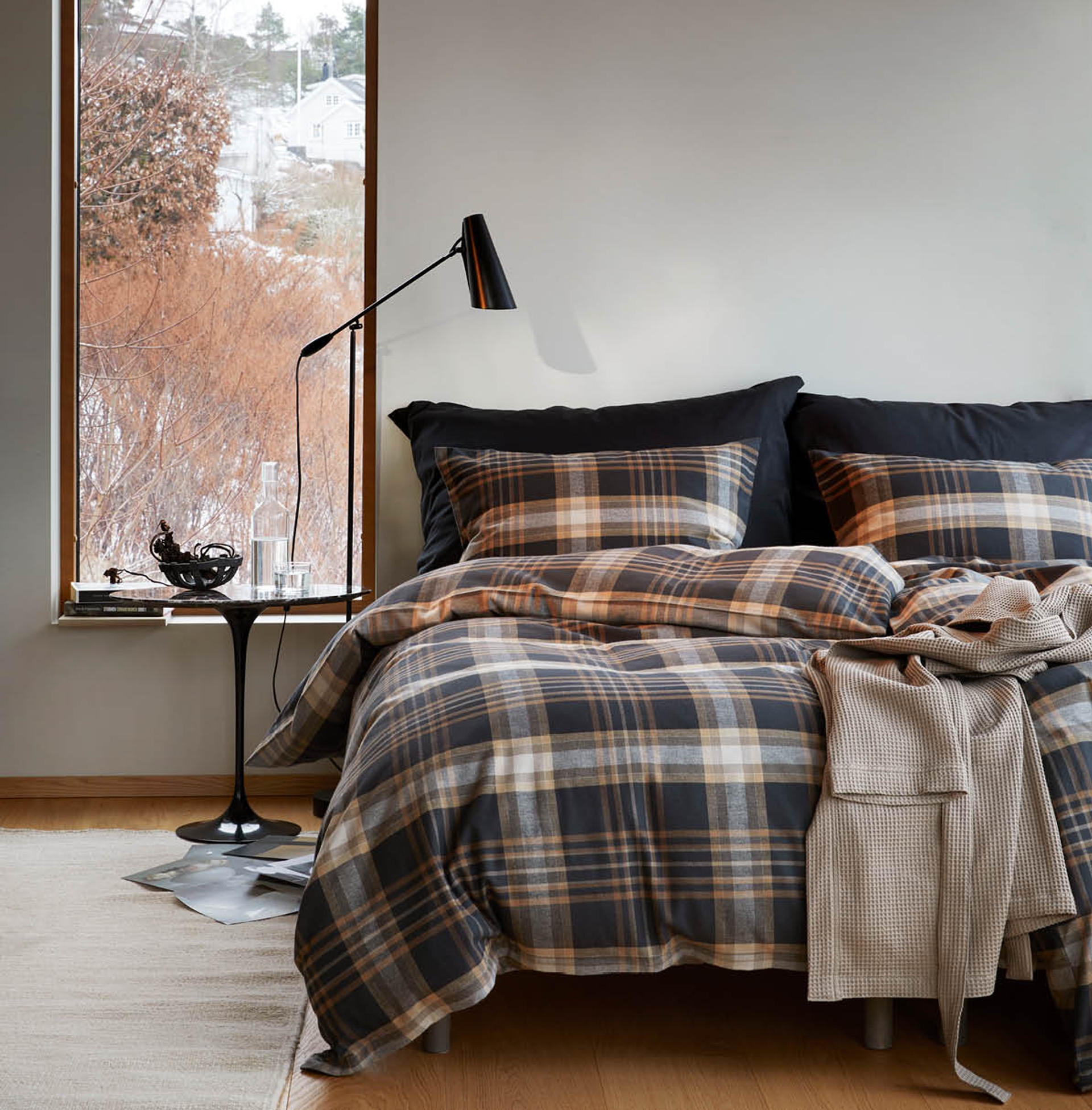 Her er flanellen for deg som elsker det lille ekstra. Når bomullstrådene farges før vevingen, blir stoffet ekstra mykt og behagelig. Deretter børstes overflaten varsomt for å få fram den unike flanellfølelsen: lun, myk og rett og slett uimotståelig. Sengesettet Richard fås i dempet sort og beige.