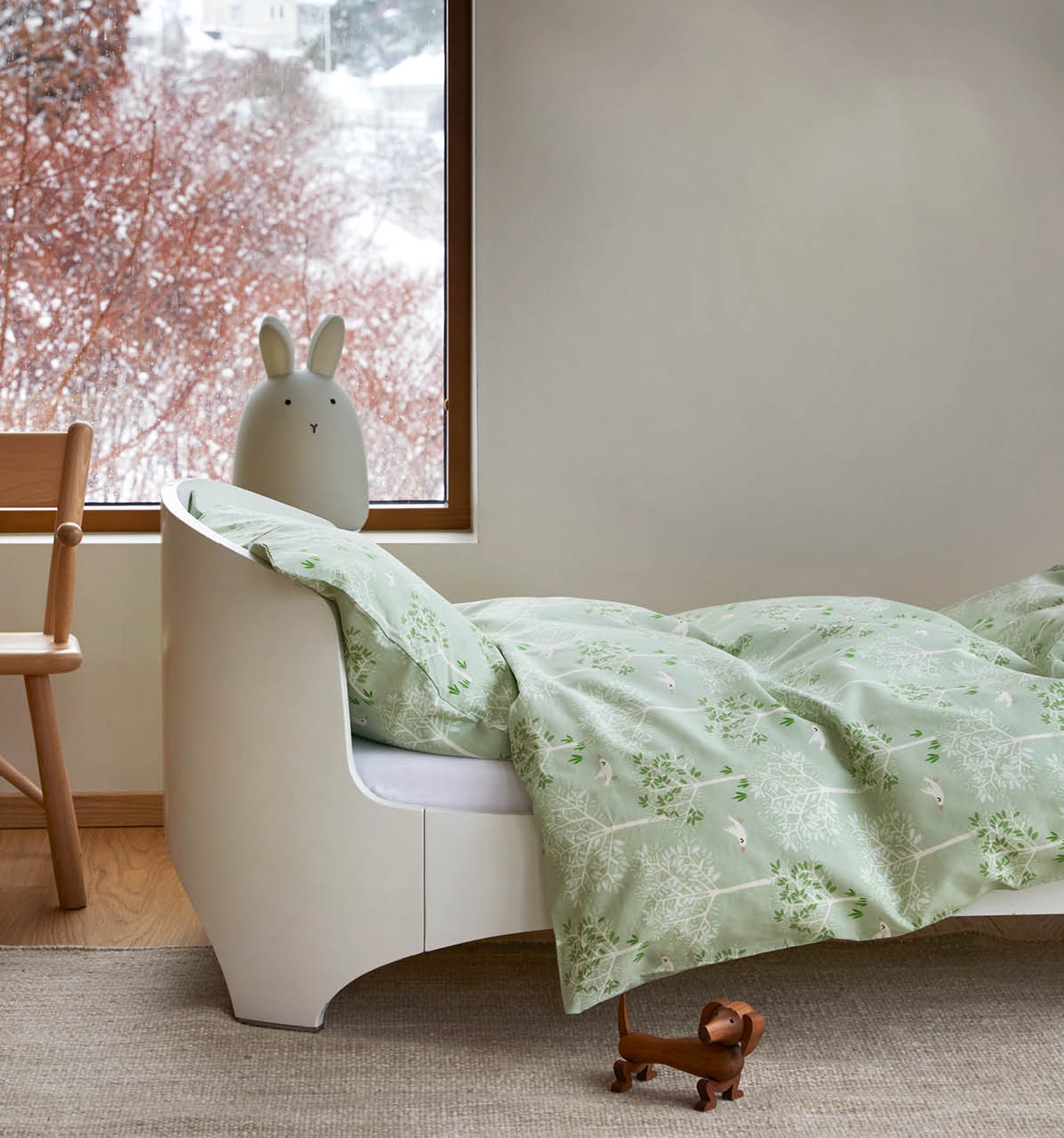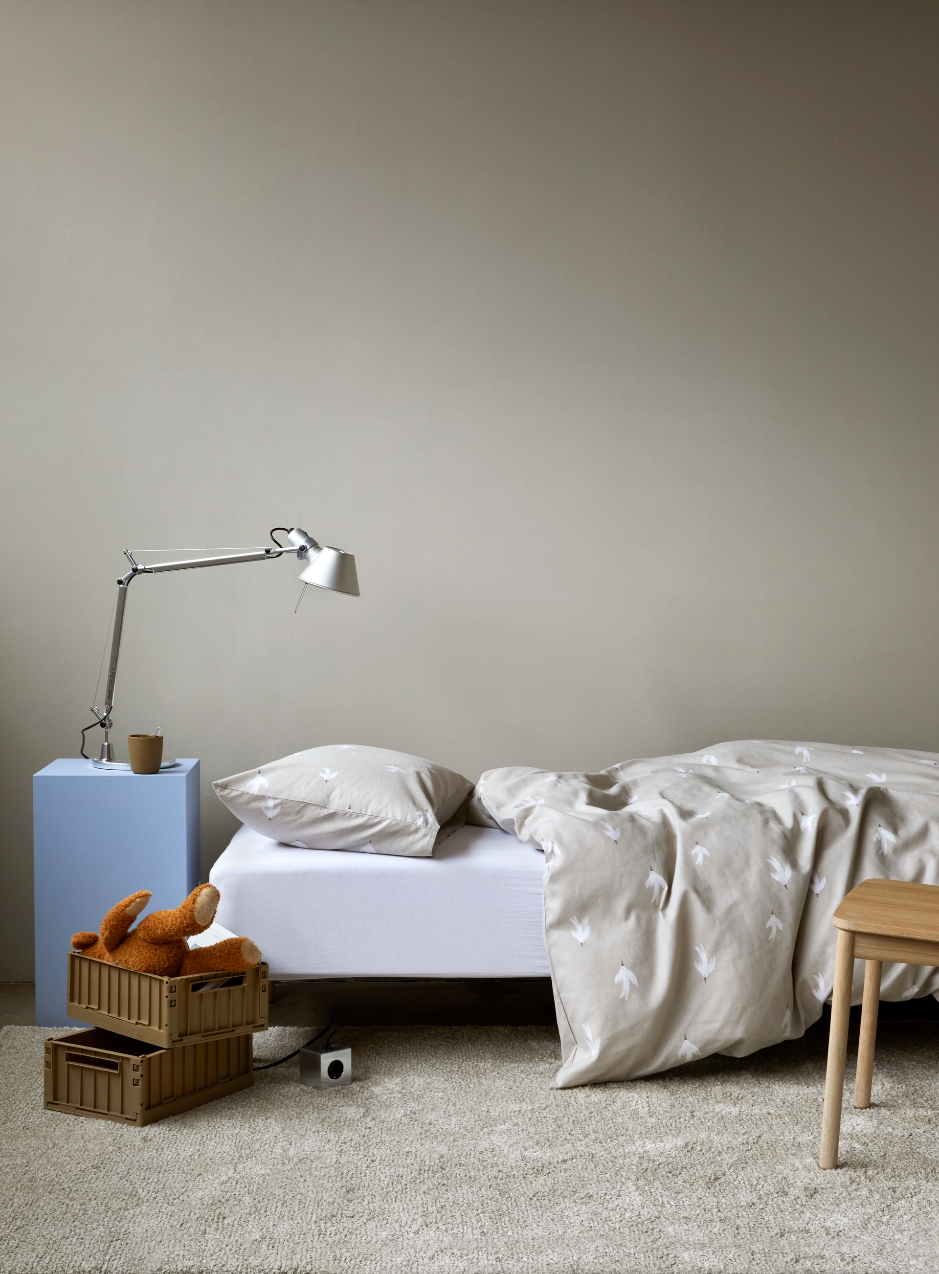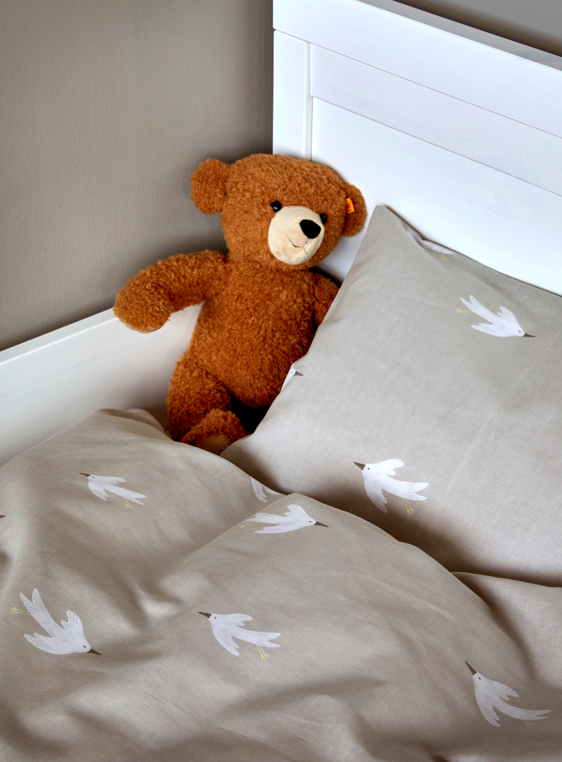 Små barneføtter som kommer tuslende tidlig på morgenen, med ønske om en god dag. Og bestemte tramp på kvelden, når nyheten om at leggetiden ikke blir godt mottatt. Å våkne i, samt å legge seg i sengesett med hyggelig mønster og deilige kvaliteter er til glede for både store og små.
