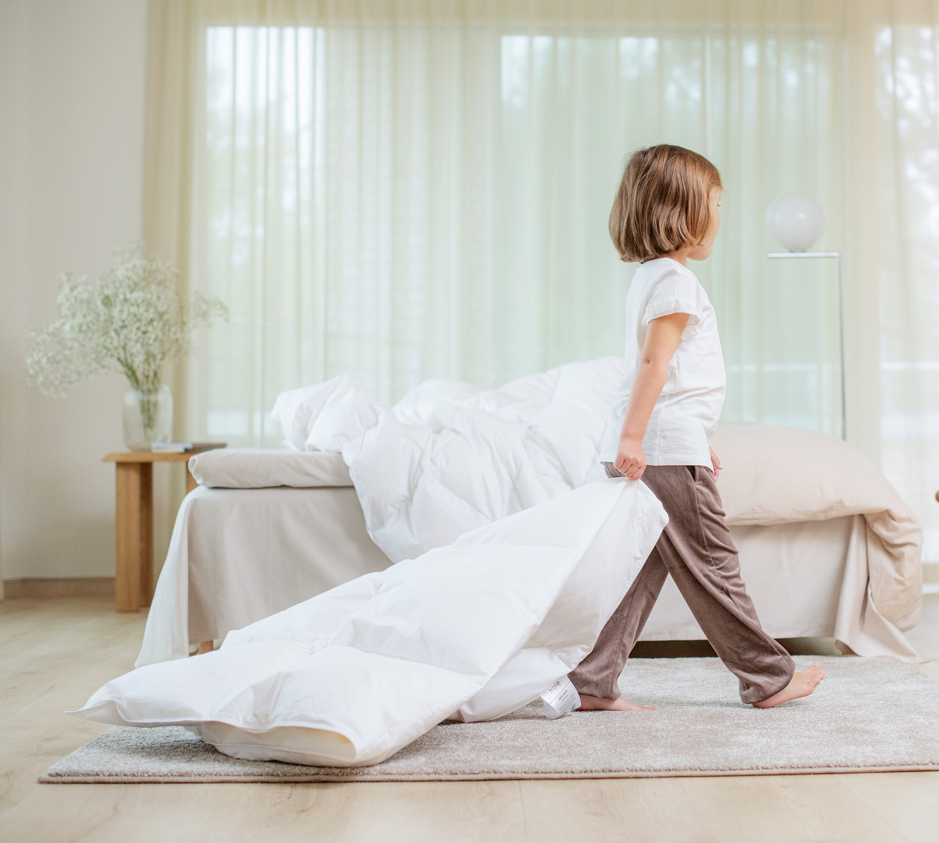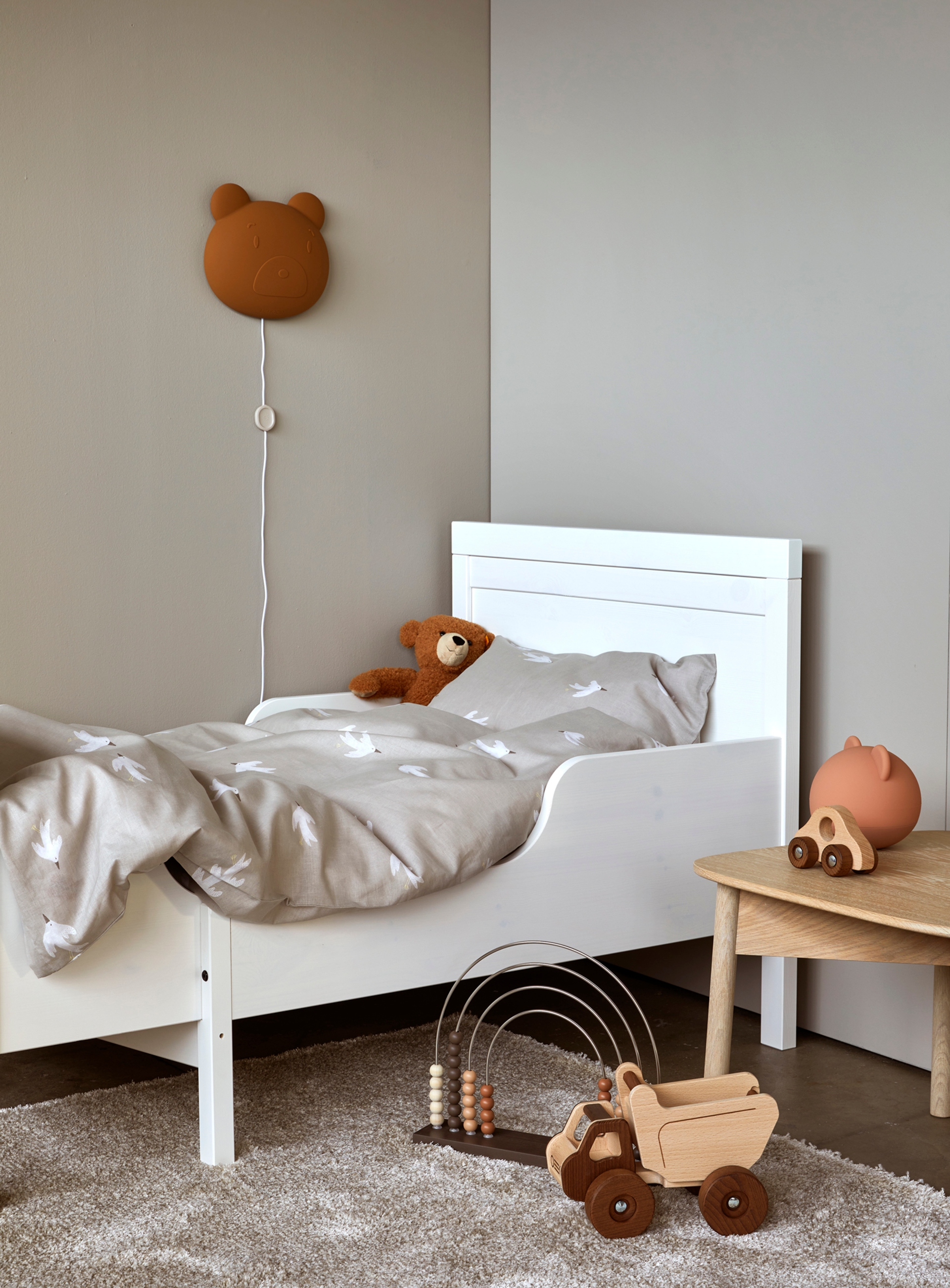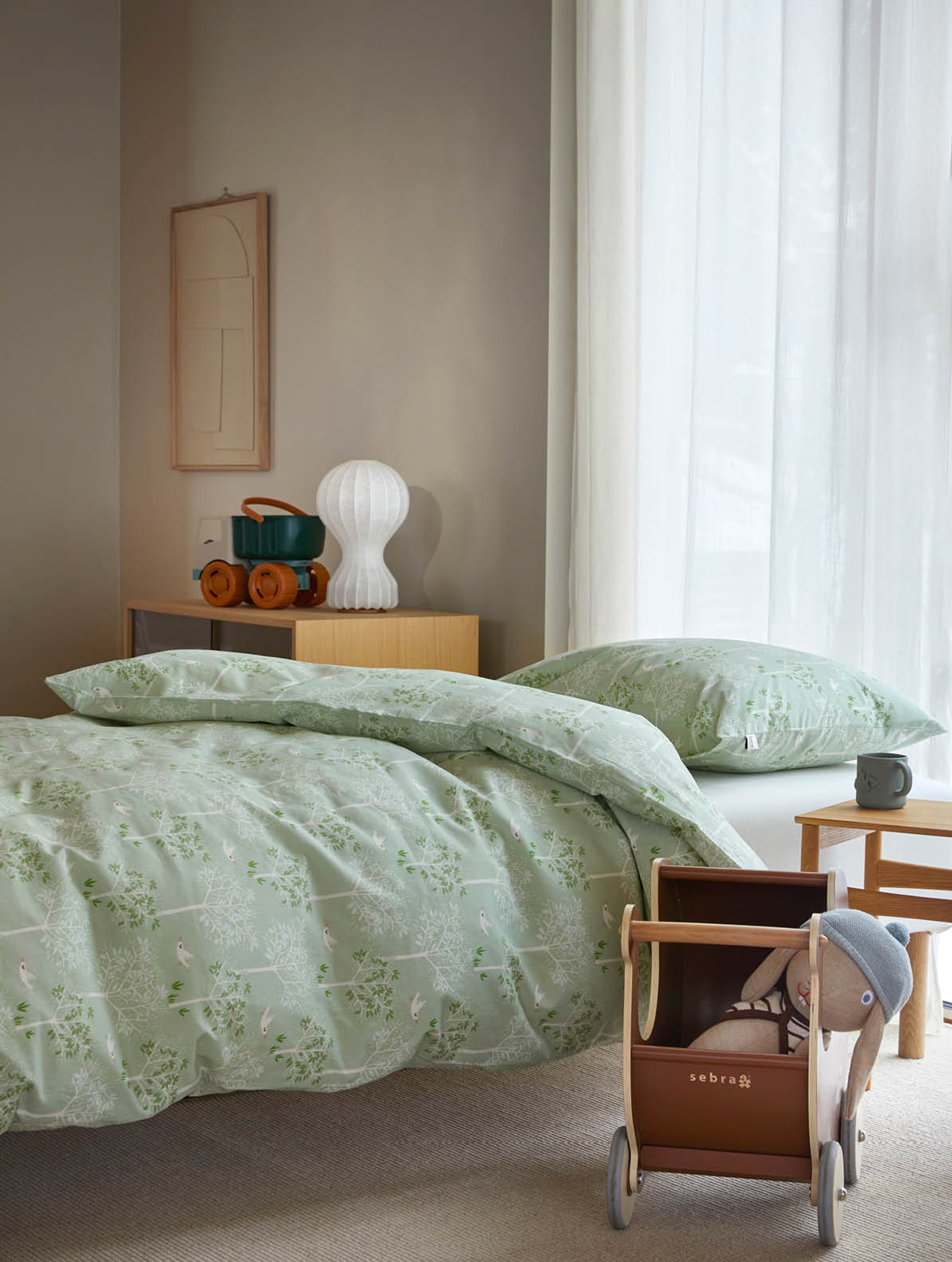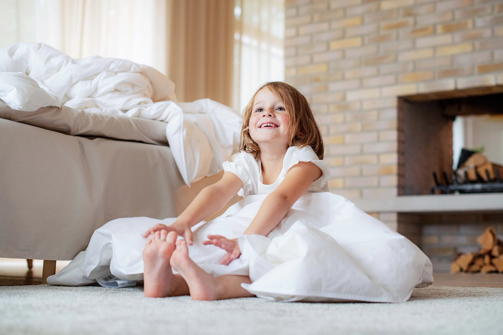 Små barneføtter som kommer tuslende tidlig på morgenen, med ønske om en god dag. Og bestemte tramp på kvelden, når nyheten om at leggetiden ikke blir godt mottatt. Å våkne i, samt å legge seg i sengesett med hyggelig mønster og deilige kvaliteter er til glede for både store og små.
