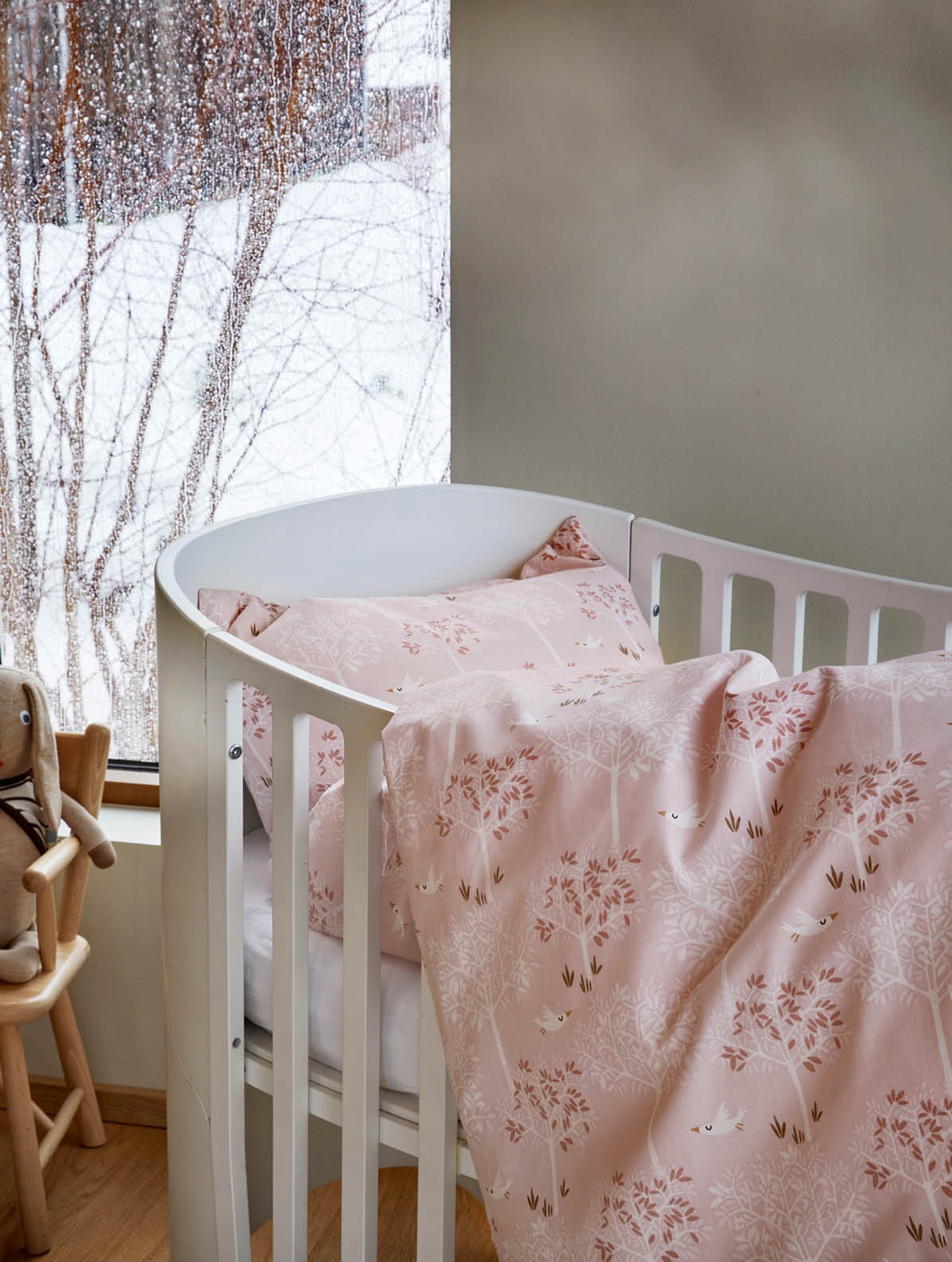 Nyheten Kira sengesett til barn er perfekt for de minste som trenger en myk og komfortabel seng. Vi har valgt en ekstra fin bomull som er kjent for mykhet og høye slitestyrke. Det søte designet med trær og fugler gir en koselig atmosfære på barnerommet. Kira kommer i to søte farger og flere størrelser.