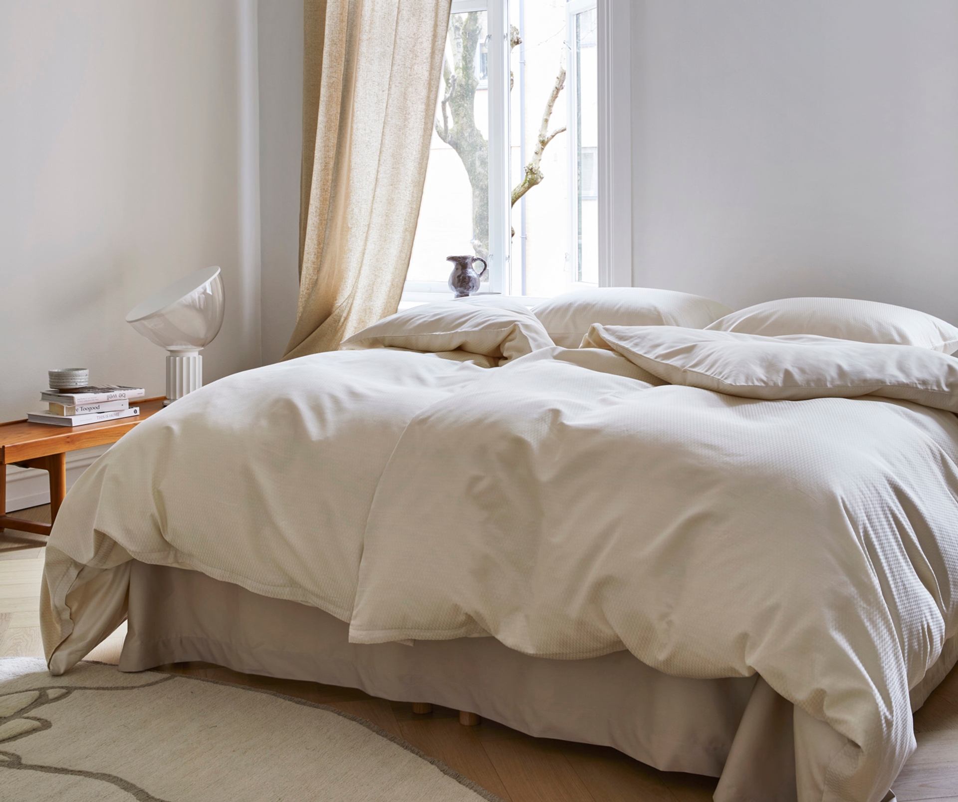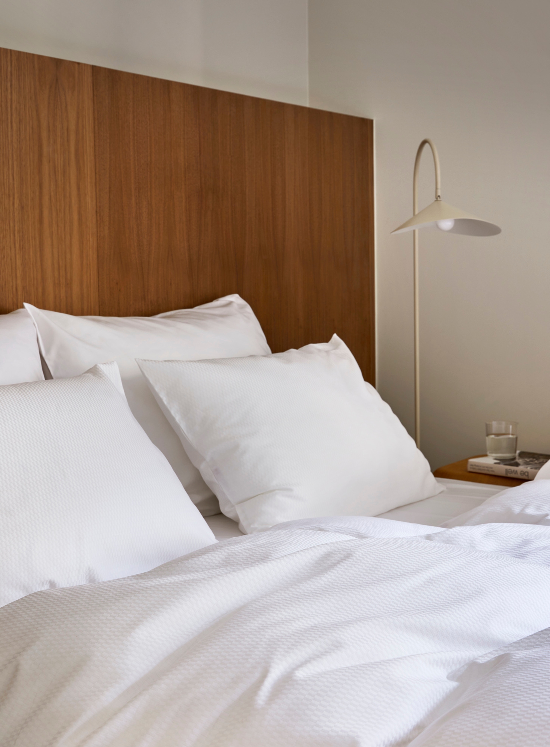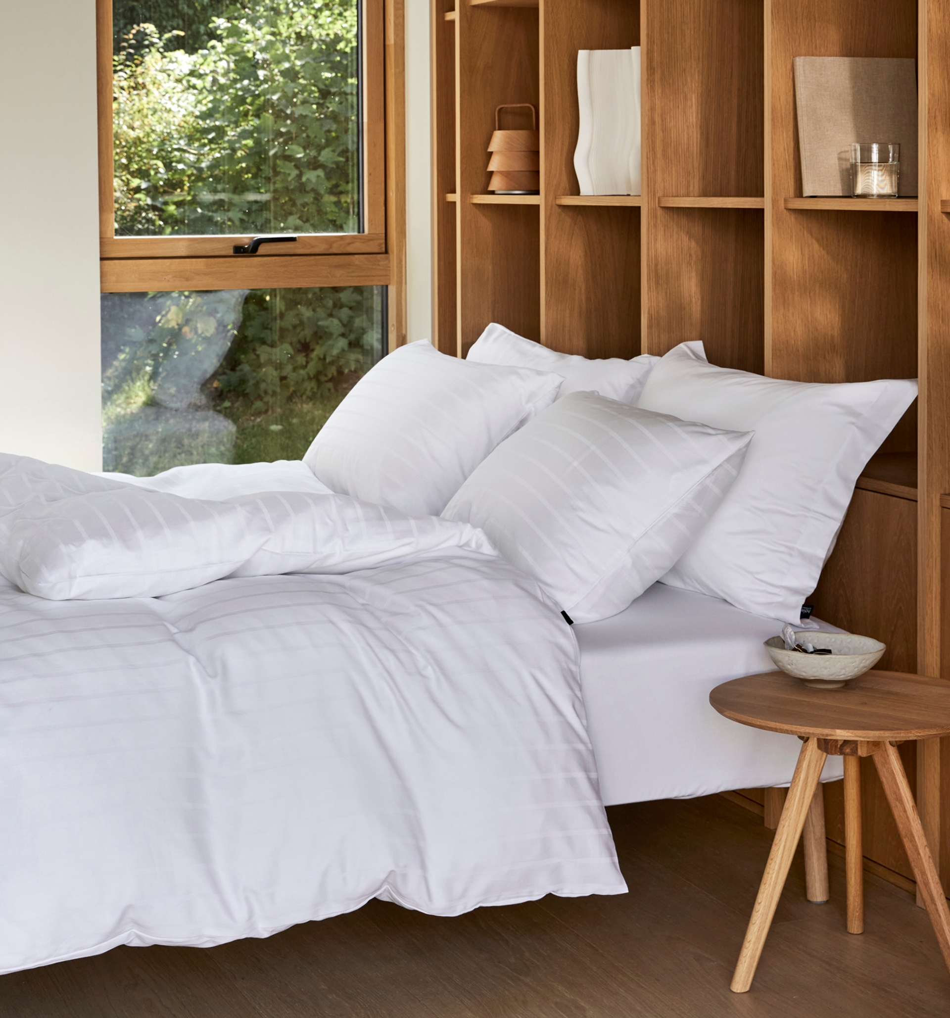 Gjør soverommet ditt til et tilfluktssted av ren luksus ved å velge vårt utvalg av premium sengetøy, laken, dyner og puter. Våre nøye utvalgte kvalitetsmaterialer, gir ikke bare en myk berøring, men også en varig komfort. Velg dyner og puter av beste kvalitet for den lette og luftige følelsen, og legg til et par hotellputer for å fullføre uttrykket. Disse nøye utvalgte elementene gir ikke bare bedre søvn, men skaper en elegant atmosfære, og er en perfekt oppskrift å gjenskape hotellfølelsen hjemme.