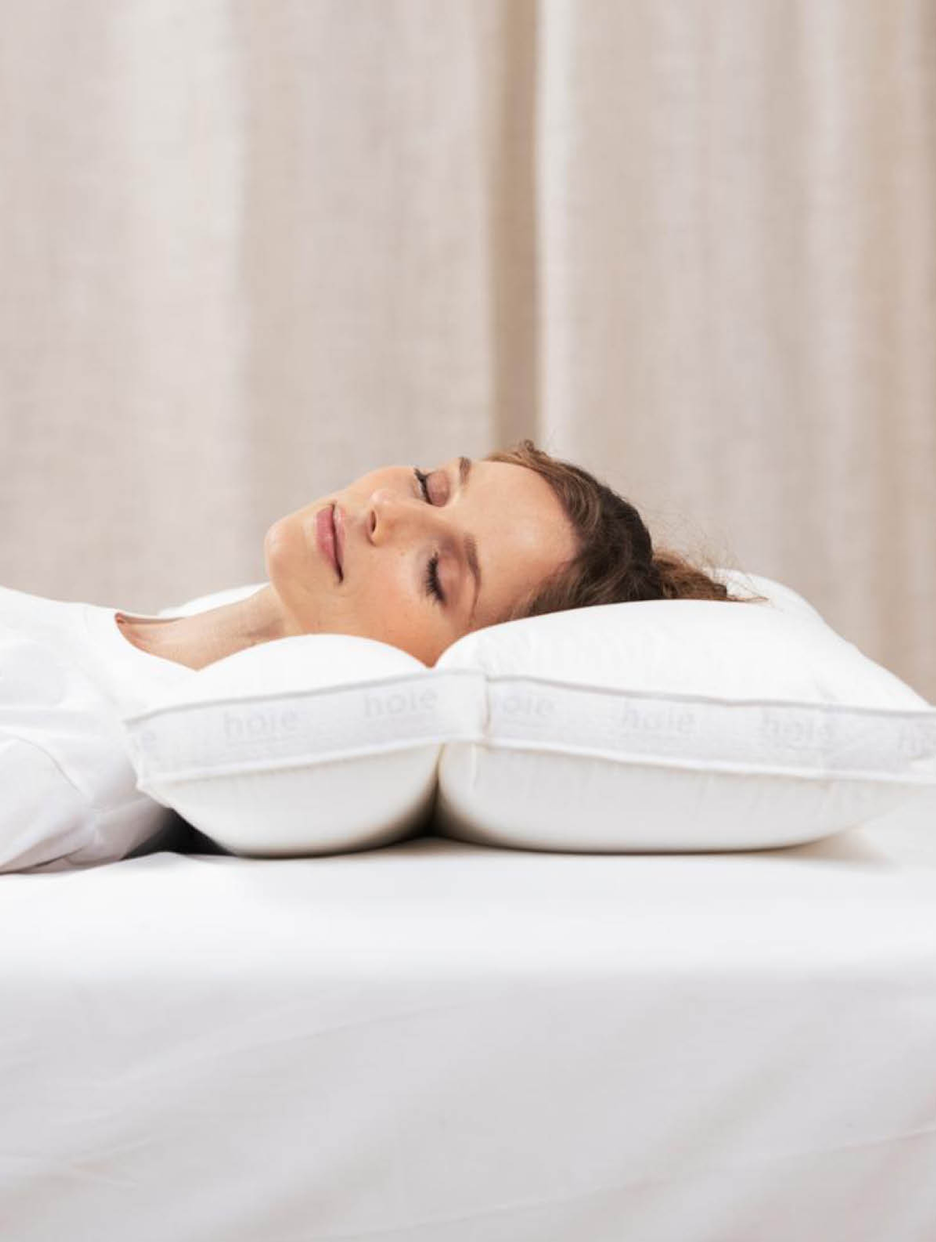 Høie Hygea Multipute dekker flere behov. Dette er en pute som både er estetisk vakker å re opp sengen med, men som også kan tilpasses et helt unikt behov for deg som sliter med ryggproblemer. Puten avlaster nemlig muskler og ledd hvis du holder rundt den slik vist på bildet.