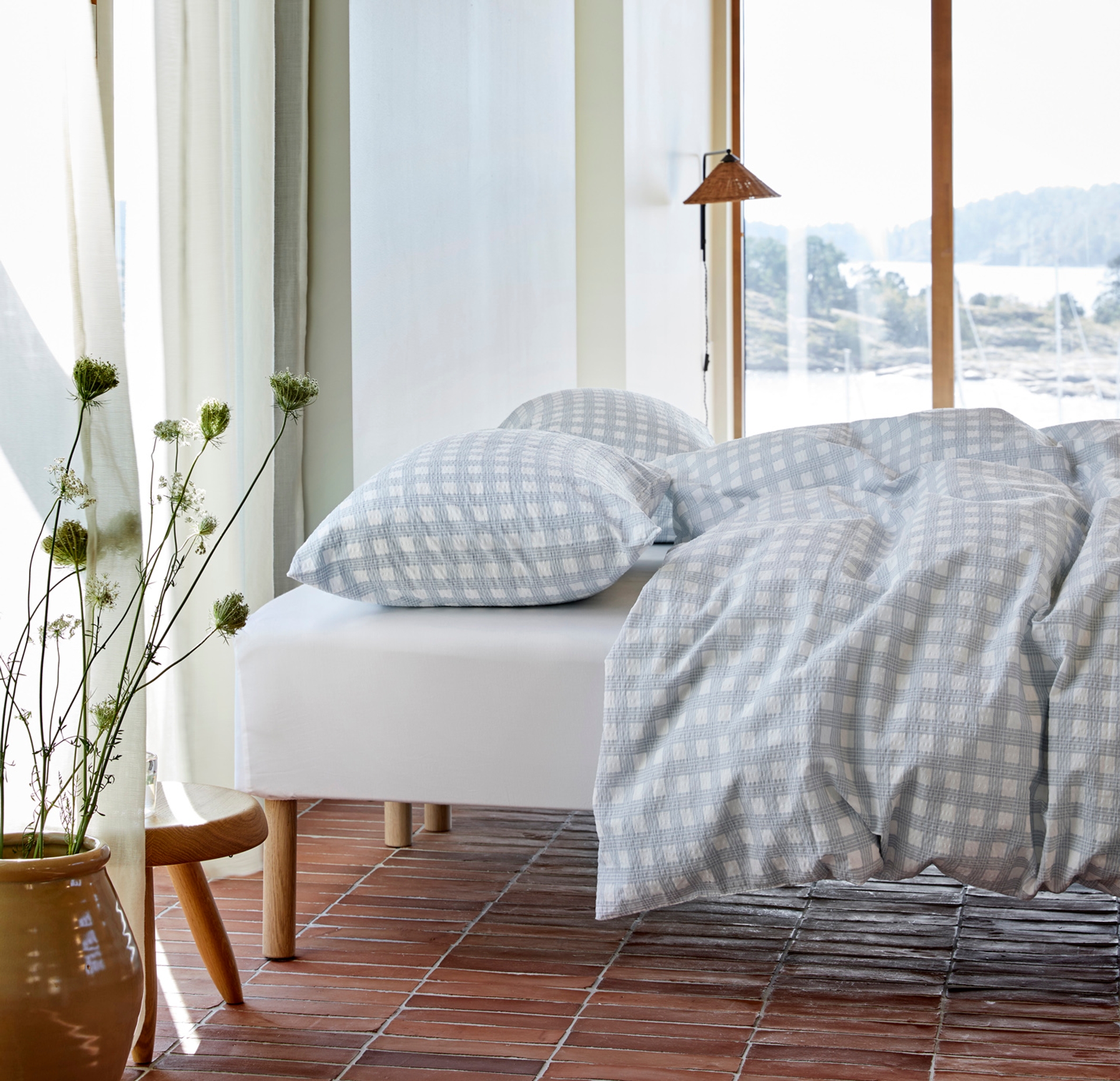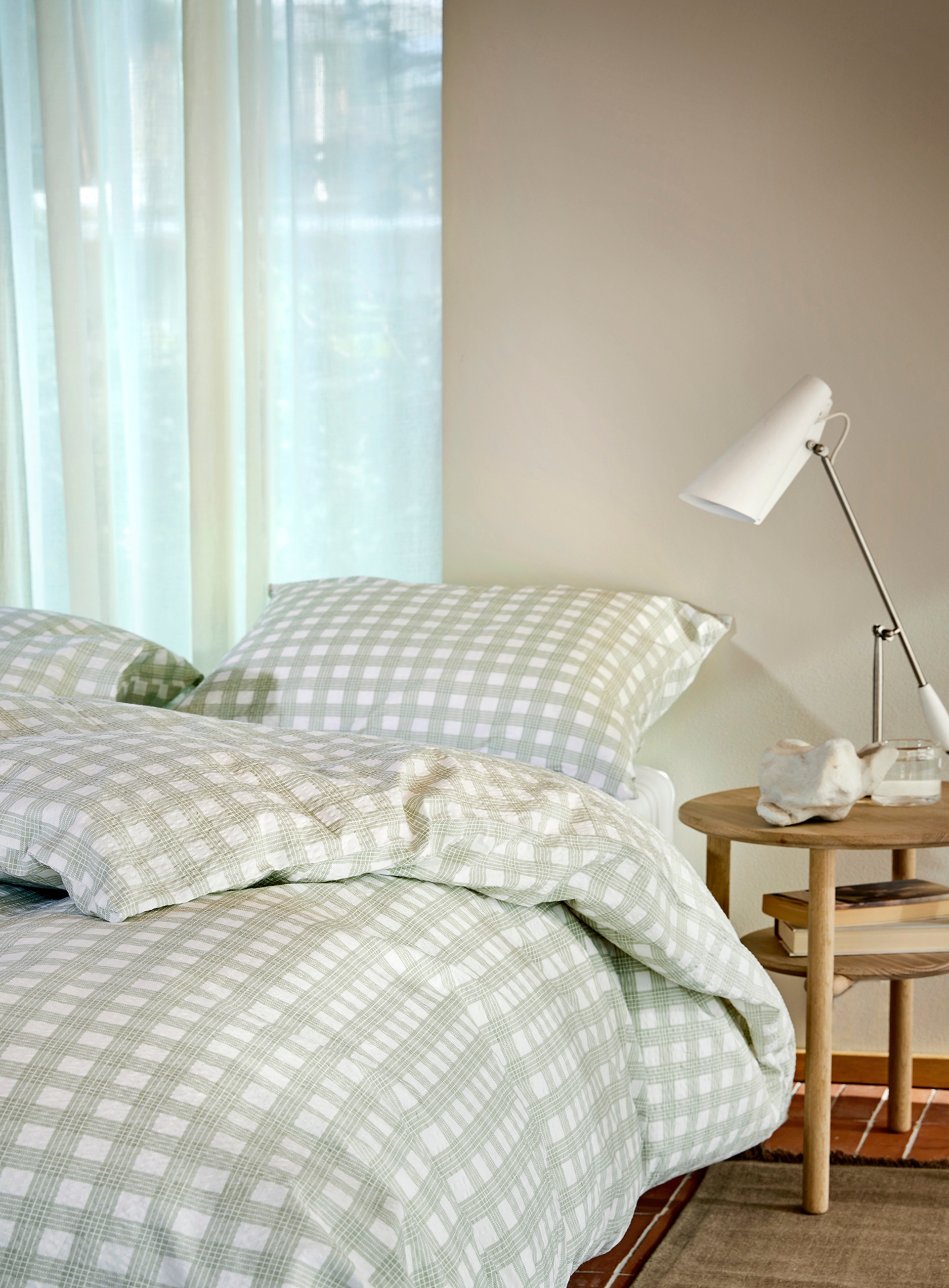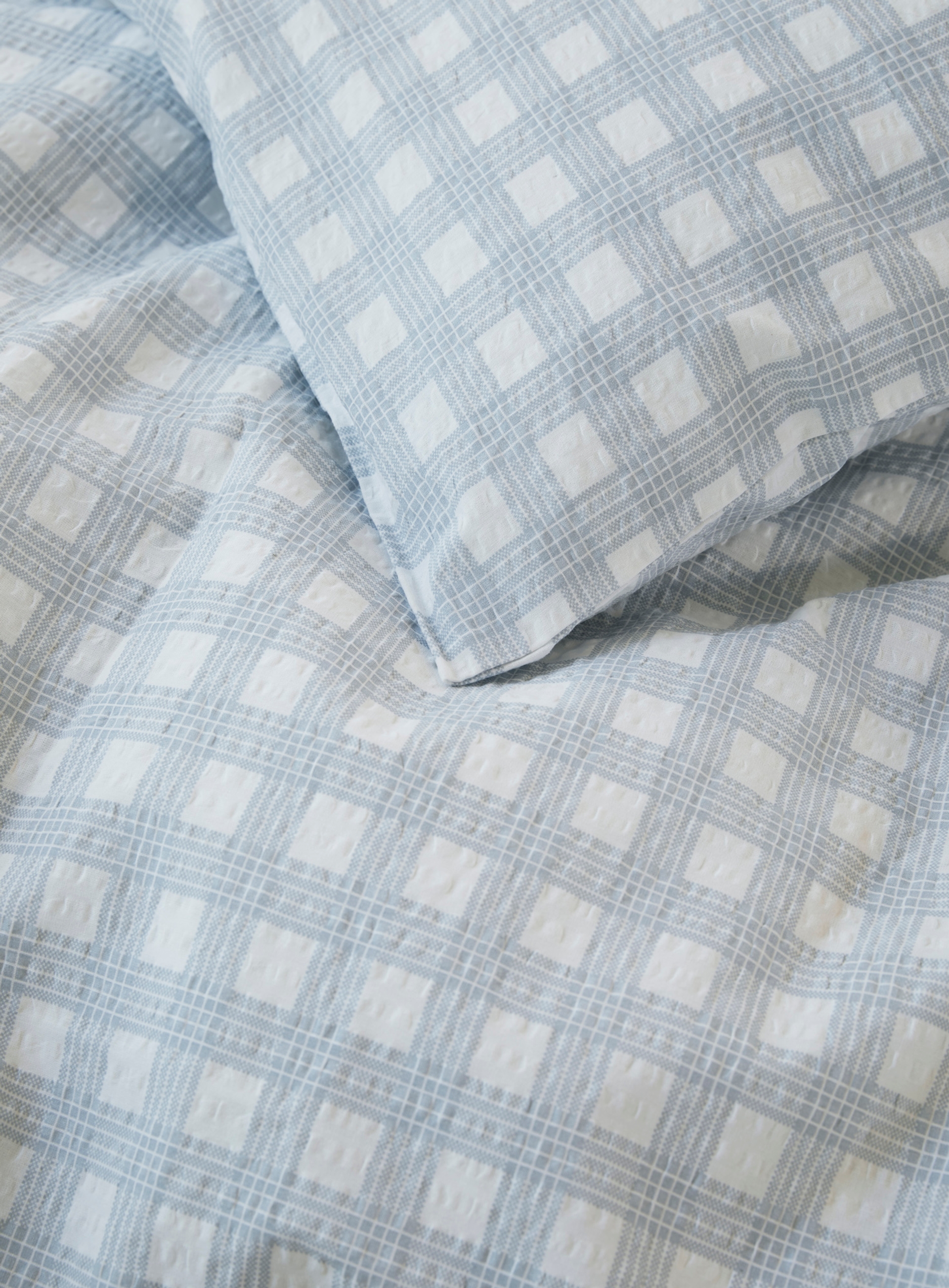 Visste du at Høie var først i verden med å lansere krepp på sengetøy, i 1955? Vi elsker den deilige, luftige følelsen en god krepp gir. Den føles sval om sommeren og lun om vinteren. Her ser du en av vårens nykommere - Birk. Et herlig rutete sengesett som fås i tre duse, fine farger.